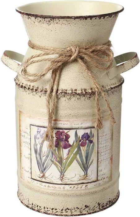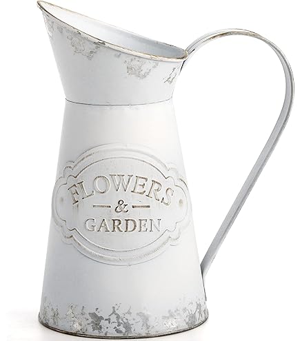 Galvanisé avec finition faite à la main et structure similaire à celle de la boîte de lait Le vase de campagne pour décorer votre maison, balcon, jardin ou bureau, vous constaterez qu'il apportera à votre maison plus spéciale, élégante, chic et vintage Parfait pour la maison, la cuisine, la salle de bain, la salle à manger, le porche, le balcon, les cours de jardin, les bureaux et une variété d'entrées intérieures et extérieures, ou pour décorer vos magasins, la scène de mariage, les maisons vertes et les cours, l'idée pour les pendaisons de crémaillère spéciales, la cuisine ou la salle de bain rénovée, etc. Vase Blanc Vase Rustique Blanc Avec Poignée Pour Décoration De La Maison, Fête De Vase Blanc Vintage 14x20x24cm CVHOMEDECO. Galvanisé avec une finition faite à la main et une structure semblable à celle d'un bidon de lait. Parfait pour la maison, la cuisine, la salle de bain, la salle à manger, l'entrée, le balcon, le jardin, la cour, le bureau et une variété de lieux intérieurs et extérieurs, ou pour décorer votre magasin, votre scène de mariage, votre maison verte et votre cour, une idée pour des pendaisons de crémaillère spéciales, une cuisine ou une salle de bain rénovée, etc. Métal Vase Shabby Chic Classy Conçu Pays Rustique Vase Primitif De... Boîte de lait rustique de ferme, boîte de lait en métal Le vase est parfait pour les fleurs artificielles, les fleurs séchées, les herbes, la verdure artificielle ou les fausses fleurs dans les décorations d'intérieur ou d'extérieur. Mesure 14 x 20,3 x 24,1 cm est un fournisseur d'artisanat pour la maison et le jardin.