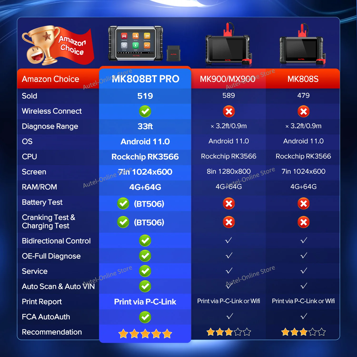 Autel MaxiCOM MK808BT Car Diagnostic Scanner, Guadeloupe