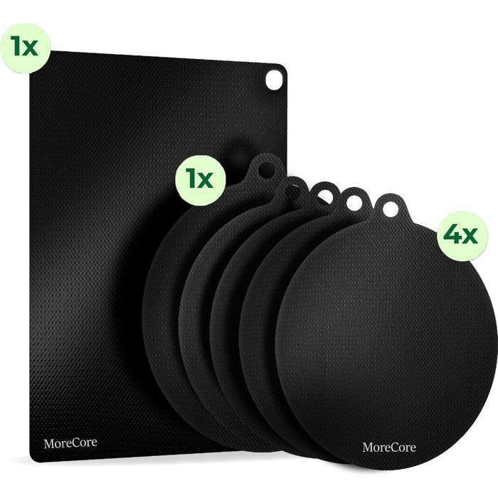 Cache Plaque Induction MoreCore Protections Plaque Induction MoreCache Protection Pour Plaque Tajine Induction Multifonction : ces tapis sont principalement conçus pour protéger votre plaque à induction, mais peuvent également être utilisés comme dessous de plat tant que la température ne dépasse pas 240 °C. Plus de 12 000 clients satisfaits · Idéal pour éviter les casseroles glissantes et ainsi éviter les rayures sur la table de cuisson à induction · Protecteurs d'induction Découvrez un large choix de protections plaques induction sur , le N°1 de la vente en ligne d Veuillez noter : les tapis de protection MoreCore ne conviennent pas aux plaques vitrocéramiques et aux fours et ne doivent pas être utilisés au micro-ondes. En outre, ils empêchent les résidus alimentaires de brûler et donnent à votre table de cuisson un aspect neuf. Anti-rayure Cuisson Protection Plaque Induction MoreCore - Tapis Silicone Antidérapant 4x22cm | Lavable Lave-Vaisselle Silicone Résistant Chaleur Ils conviennent donc non seulement pour une utilisation sur les plaques à induction, mais aussi comme dessous de verre pour la table. La plaque à induction est extrêmement sensible aux rayures et aux taches de saleté. Heureusement, les tapis de protection antidérapants MoreCore offrent une excellente solution pour protéger votre plaque de cuisson de manière optimale, afin que vous puissiez profiter de la cuisson sans soucis. Testez-les par vous-même et rejoignez ceux qui ont déjà opté pour la qualité et l'innovation de MoreCore dans leur cuisine. Nous sommes fiers des commentaires positifs de nos clients. Résistants à la chaleur jusqu'à 240 °C : ces tapis sont très résistants à la chaleur et résistent à des températures allant jusqu'à 240 °C grâce au matériau en silicone flexible. Les rayures sur votre plaque de cuisson appartiennent au passé. Rien n'est plus ennuyeux que de voir la première rayure sur votre plaque à induction ou de passer des heures sans fin à enlever les taches tenaces sur votre précieuse plaque de cuisson.