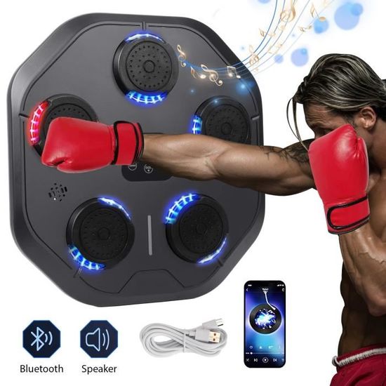 [ENTRAÎNEMENT LUDIQUE] - Dites adieu aux séances d'exercice monotones ! Music Boxing Machine Adulte,Machine électronique de boxe musicale LED Mur Smart Boxing Target pour adultes et enfants, prend en charge Bluetooth,9 modes de vitesse avec gants de boxe Dès que vous atteignez la cible, profitez d'une expérience unique grâce aux effets sonores et lumineux qui s’activent instantanément, offrant un spectacle visuel immersif. [PARTENAIRE D'ENTRAÎNEMENT ET DE DIVERTISSEMENT] - La machine de boxe musicale va bien au-delà d'un simple appareil d'entraînement. Elle devient également un appareil de divertissement familial, où proches et amis peuvent se défier, renforçant l’interactivité et la convivialité autour de l’entraînement En se connectant à un téléphone ou à d'autres appareils, elle permet de profiter de vos morceaux préférés tout en boxant, combinant l’exercice et la musique de manière unique. Un équipement parfait pour tous, du sportif aguerri au débutant Beatpunch,Smart Boxing Machine Wall Mounted,Smart Bluetooth Music Transformez votre espace maison en salle de boxe sans avoir besoin de vous déplacer à la salle de sport, vous offrant une grande liberté et économisant temps et argent Idéale pour les entraînements familiaux, elle convient aussi bien aux adultes qu’aux enfants, permettant d’améliorer leurs réflexes et d'apporter une touche ludique à l’exercice physique. Facile à installer, il suffit d’utiliser le ruban adhésif double face et les fixations velcro incluses pour la placer sur un mur sans perçage. Avec 9 modes d'entraînement et 9 niveaux de vitesse, c'est votre entraîneur de boxe intelligent tout-en-un pour la perte de poids, le cardio et le soulagement du stress - parfait pour les adultes, les adolescents et les enfants Panneau Frappe Lumières Sons Wellshow Mural Smart Blue Tooth Musique Boxe Entraîneur électronique Cible De Bo Boxe Musicale [INSTALLATION FACILE] - Gagnez de la place avec cette machine de boxe murale !