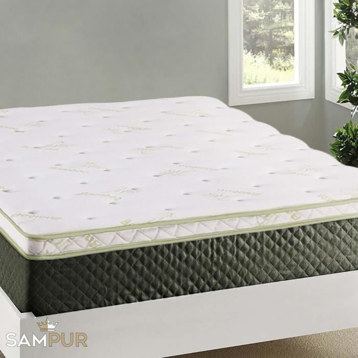 Associés à un traitement hypoallergénique, anti-acariens et antibactérien certifié OEKO-TEX, ces éléments garantissent un couchage plus hygiénique et parfaitement adapté aux peaux sensibles. Découvrez notre Matelas César mémoire de forme et surmatelas pas cher. Promotions permanentes et paiement sécurisé Découvrez une véritable révolution du sommeil : le premier matelas équipé d’un double surmatelas, conçu pour offrir un accueil précis, un soutien universel et un confort ultra-personnalisé. QUALITE & DURABILITE : Au cœur du matelas, une mousse haute résilience 25 kg/m³ assure un maintien homogène et un soutien durable de la colonne vertébrale, sans risque d’affaissement. Il faut attendre maximum 48 h pour que le matelas reprenne sa forme initiale LIVRAISON RAPIDE ET GARANTIE 5 ANS : le matelas est livré roulé et compressé (gage de qualité) dans un carton de protection. Les + Produit : - Le premier matelas équipé d’un double surmatelas à mémoire de forme intégré, pour un confort sur mesure Accueil précis et personnalisé grâce à une double mousse viscoélastique qui épouse parfaitement les courbes du corps - Un confort permanent grâce à la microcirculation de l’air pour un couchage toujours sein et frais - Une respirabilité optimale grâce à un tissu tricoté favorisant la circulation de l’air ainsi qu'à une bande d'aération 3D permettant d’évacuer l’humidité - Indépendance de couchage optimale, idéale pour dormir à deux - Dessous anti-dérapant pour une stabilité parfaite Jusqu'à 48% Matelas Biconfort 2 zones de confort (souple et ferme), Sampur COUTIL certifié OEKO-TEX : Conçu pour rester sain et frais en toutes saisons, ce matelas est doté d’un tissu tricoté 280 g respirant, d’une bande d’aération 3D et d’une circulation d’air permanente à travers la structure. Là où les autres matelas se limitent à un seul niveau de confort, celui-ci propose une double couche de bien-être qui s’adapte à votre morphologie et à vos besoins. INDEPENDANCE DE COUCHAGE : Fini les nuits perturbées par les mouvements de votre partenaire : l’indépendance de couchage assure une absorption optimale des mouvements, pour un repos paisible à deux. Essayez le matelas César, c'est l'adopter.Ce matelas à mémoire de forme saura vous conquérir grâce à sa mémoire de forme et son surmatelas intégré.Adapté à tous les types de morphologies, ce matelas a été pensé pour soulager les pressions qu'exerce votre corps offrant ainsi une relaxation musculaire maximale.Rendons à ce matelas, les lauriers qui lui reviennent : son confort... Surmatelas Memoire De Forme 140x190 Test Du Surmatelas Hiimgo Mémoire De Forme 160 X 200 Cm Surmatelas Mémoire De Forme 140 X 190 INNOVATION SAMPUR : le matelas à double surmatelas intégré – Découvrez une véritable révolution du sommeil avec un matelas unique, équipé de deux couches de confort superposées à mémoire de forme.