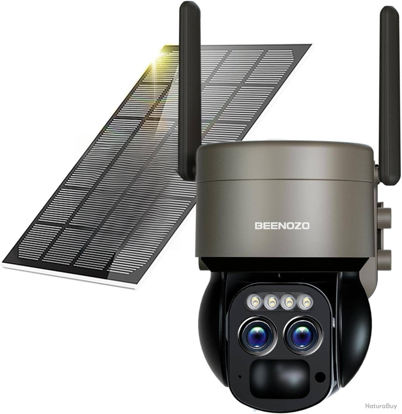 6MP Caméra Surveillance WiFi Extérieure à Double Objectif - 360° PTZ Caméra IP, Détection Humaine avec Panneau Solaire, Vision Nocturne Couleur, Suivi Automatique, Audio Bidirectionnel,IP66 Double objectif 4K pour plus de clarté] La camera surveillance wifi exterieure sans fil BEENOZO est livrée avec deux caméras HD, une super haute résolution 4K et un zoom hybride 6x pour une image plus claire 【double objectif, double sécurité et 100% sans fil】notre caméra de sécurité extérieure sans fil beenozo dispose de deux capteurs de mouvement PIR. Prend en charge les connexions ultra-stables de 2,4 GHz. La notification instantanée sera envoyée une fois que l'événement PIR s'est produit,vous pouvez configurer l'aboiement ou n'importe quelle voix pour qu'il soit une sirène pour effrayer l'intrus BEENOZO 4K Camera Surveillance WiFi Exterieure sans Fil avec Double Objectif,8X Zoom Hybride,360° PTZ Caméra Interieure,Suivi Automatique,avec Panneau Solaire,Nocturne Couleur,Sirène,Audio Bidire en destockage et reconditionné chez 【6MP QHD & Vision Nocturne Couleur】Camera exterieur sans fil est équipée de la dernière technologie de puce et d'un capteur couleur CMOS 1/2,9, présentant des images et des vidéos plus lumineuses, plus réalistes et plus vives. Cliquez sur l'ID de l'appareil qui apparaît dans l'APP pour obtenir une connexion en un clic, ce qui simplifie le processus de connexion (le WiFi 5G n'est pas pris en charge). Le panneau solaire est livré avec un câble Type-c de 3 m pour une installation unique et aucun démontage nécessaire Grâce à un capteur de couleur à faible éclairage,4 lumières blanches s'allumeront automatiquement lorsqu'un objet est détecté en mouvement dans un environnement sombre, permettant un enregistrement vidéo en couleur la nuit. Caméra de surveillance HD 6MP à double objectif Caméra N'étant plus limité par le cordon d'alimentation, vous pouvez continuer à l'utiliser même par temps nuageux. Image HD 4K et vision nocturne Couleur]la caméra de sécurité solaire Outdoor Wireless vous offre des images et des vidéos 4K (2560 x 1440) Full HD, 8mp...