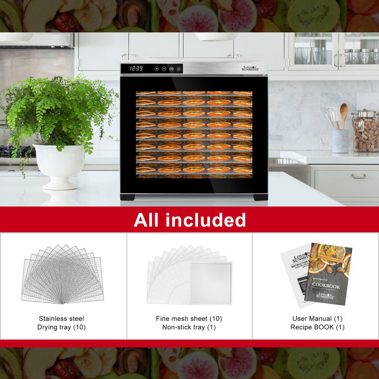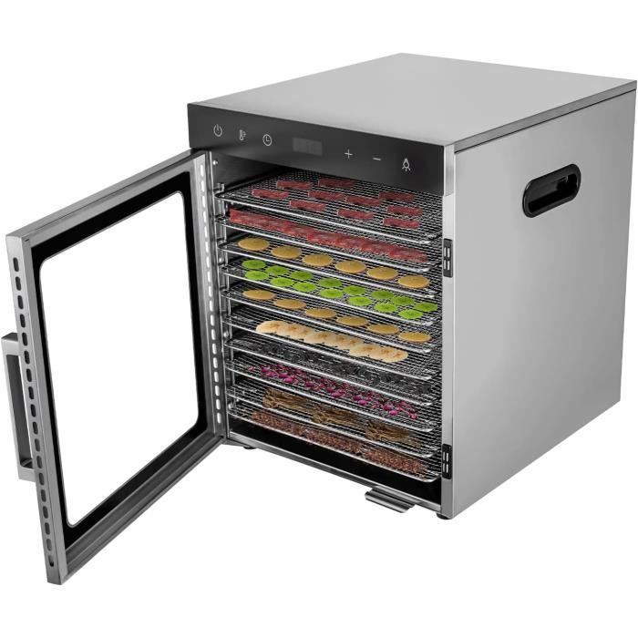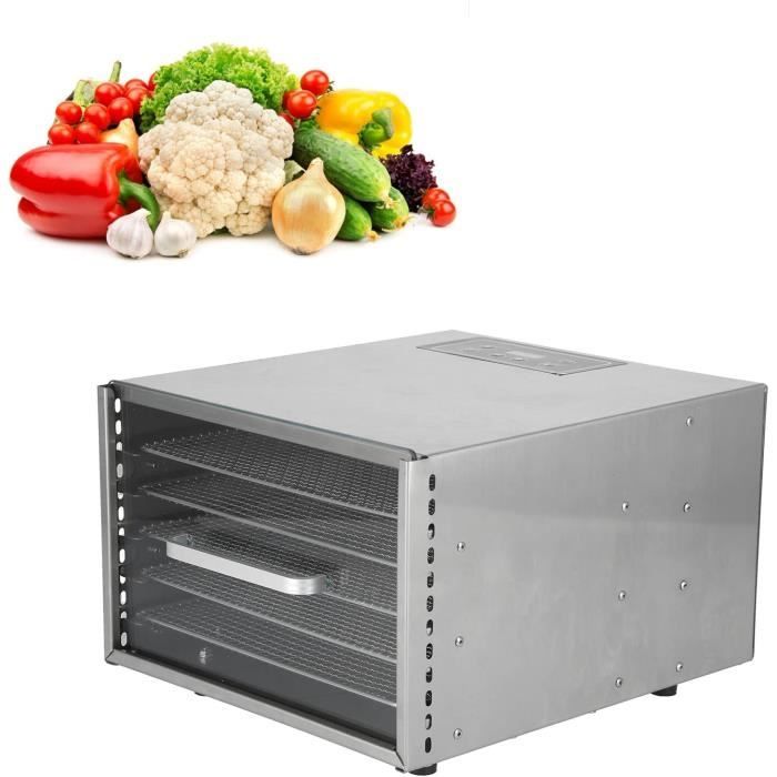 Utilisation : Il peut sécher une variété de légumes, fruits, viandes, fleurs et autres aliments pour un usage domestique ou commercial., Mode d'emploi : 1., Lavez les fruits et coupez-les en tranches., 2., Placez les fruits uniformément dans le déshydrateur., 3., Réglage de l'heure et de la température., 4., Attendez que le fruit soit complètement sec. Couleur : argenté et noir. Détails : Dissipation de la chaleur : l'arrière de l'appareil est équipé de plusieurs dissipateurs thermiques pour dissiper la chaleur générée à temps et prolonger la durée de vie de l'appareil. Sûr et fiable : le plateau est fabriqué en acier inoxydable 304 de qualité alimentaire sans BPA, de sorte que vous n'avez pas à vous soucier de l'hygiène alimentaire. Dimensions du produit : 38,5 x 34,5 x 42,5 cm., Poids brut : 13 kg., Poids net : 12 kg. Elite Gourmet Déshydrateur d'aliments à 4 plateaux en acier inoxydable Grande capacité : l'appareil dispose de 10 compartiments d'une taille de 11,81 x 11,02 pouces chacun, de sorte que vous pouvez sécher plusieurs aliments à la fois. Haute efficacité et économie d'énergie : la puissance de 800 W peut obtenir l'effet de séchage souhaité en moins de temps, ce qui le rend à la fois efficace et économe en énergie. Puissance : 800 W. · Nombre de plateaux : 10. · Plateaux amovibles lavables au lave-vaisselle : oui. · Panneau de commande : digital. · Thermostat réglable : 35 °C... Déshydrateur Alimentaire En Acier Inoxydable à 8 Plateaux * Numérique De La Température Et Du Chronomètre, Protection * Les Surchauffes, Machine De Déshydratation De Nourriture Et De Bœuf * Avec Livre De Recettes Pour Fruits Herbes Viande G 601100068854470 Pieds antidérapants : il y a quatre pieds antidérapants au bas de l'appareil qui empêchent efficacement l'appareil de glisser sur une plate-forme lisse. Type de lumière intégrée : LED (incluse dans la livraison)., Nombre de plateaux : 10., Plage de température : 30-90 C. Ce déshydrateur alimentaire en acier inoxydable est parfait pour faire de la viande séchée, des fruits séchés, du cuir de fruit, du yaourt, des légumes, des noix et même du pain Plage de temps : 0,5-24 h Bruit : 48 dB. 1 câble d'alimentation. Caractéristiques : Modèle : SS-10H Matériau : acier inoxydable. Visibilité du processus : la porte en verre et l'éclairage LED intégré vous permettent de garder une trace du processus de séchage et de détecter des changements subtils dans le processus de séchage.