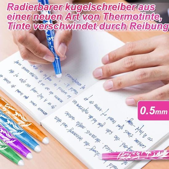 Dessins artistiques et journaling. Le design rétractable assure durabilité et commodité, ce qui fait de ces stylos à bille effaçables avec gomme le choix parfait pour tous ceux qui recherchent une solution d'écriture fiable Ces stylos effaçables combinent les propriétés populaires des stylos gel et des stylos roller et vous permettent une écriture propre et précise sans taches ni bavures. Gomme incluse : les stylos effaçables et la gomme assortie vous permettent de les corriger facilement lors de vos déplacements. Idéal pour l'école et le bureau : parfait pour les devoirs, l'organisation du bureau, les projets créatifs et comme compagnon quotidien pour les adultes et les enfants. 12 couleurs vives : un large choix de couleurs vives pour une création créative, un marquage coloré et une écriture claire. Stylo à pointe fine de 0,5 mm : lignes fines et nettes pour des polices particulièrement nettes et des dessins détaillés. 12 Couleurs Stylos Effaçables, 0.5mm Stylo Gomme, Stylos à Bille avec... Points forts : Stylo gel effaçable : écrivez et corrigez comme avec un crayon, mais avec le trait clair d'un stylo gel. HJJMN 12 Stylos EffaçAble, 0,5 Mm Stylos à Bille Avec Gomme Pour Stylos Effaçables 0.5 Mm 10 Pièces Stylos à Bille Colorés Stylos Avec Citations Inspirantes Stylo Frixion Effacable Avec ces stylos effaçables, vous pouvez créer sans effort sans bavures ou traces de gomme. Comprend une gomme pratique pour un effacement précis. Convient également comme remplacement de stylo effaçable ou alternative au stylo fin. Idéal pour : devoirs et projets créatifs. Organisation du bureau et planification.