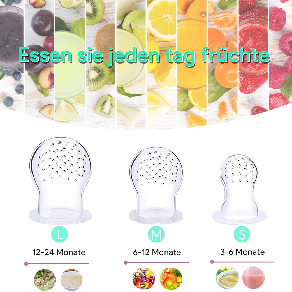 Idéal pour soulager les dents – Conçu pour une prise en main facile, notre mangeoire fournit également un soulagement apaisant pour les gencives douloureuses Il passe au lave-vaisselle et comprend des capuchons de protection pour garder les embouts en silicone propres et éviter le désordre lors du remplissage. Tetine Grignoteuse Bebe WeSweet Mangeoire à Fruits Pour Bébé – Mangeoire à Fruits En Silicone – Moules De Congélation Pour Lait Maternel Pour Bébé Faisant Ses Dents Et Nourrisson Auto-alimentation, Cadeau Idéal Pour Future Diversification Alimentaire Bébé Design sans BPA et sûr : la mangeoire à fruits Right well pour bébé est fabriquée à partir de silicone 100 % sans BPA, de qualité alimentaire, assurant une expérience sûre et non toxique pour votre tout-petit. C'est un outil parfait pour soutenir l'indépendance et les compétences d'alimentation précoce de votre bébé. Son design compact et léger le rend facile à transporter, parfait pour les voyages au parc, les voyages ou les visites à des amis et à la famille. Combinant les fonctions de distributeur de fruits et de anneau de dentition, il permet a votre bebe de savourer des fruits frais tout en massant ses gencives. Une solution polyvalente pour l'alimentation et le reconfort pendant la poussée dentaire Distributeur Nourriture Bébé 2 Cuillères Distributeurs Bébé PandaEar - Silicone Alimentaire 4oz - Mangeoire Fruits Cuillere Bebe Design multifonction : cette mangeoire pour bébé est livrée avec 3 embouts de dentition en silicone souple de différentes tailles, conçus pour apaiser les gencives douloureuses et accueillir les nourrissons à différentes étapes. [Encourage l'auto-alimentation] : notre tétine de dentition dispose d'une poignée ergonomique conçue pour les petites mains, aidant votre bébé à apprendre à s'auto-nourrir et à développer la coordination œil-main. La sécurité est notre priorité absolue, de sorte que vous pouvez faire confiance à cette mangeoire pour un usage quotidien.