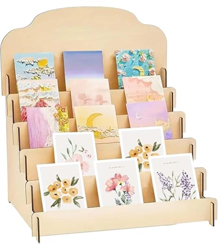 Présentoir Bois Tournant Présentoir Rotatif 3 étages Whchiy - Pour Cartes Postales, Autocollants, Sachets - Bois ébène Display Cartes Postales Cartes Voeux