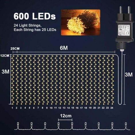 La puce de mémoire intégrée enregistre votre dernier réglage de mode, il n'est pas nécessaire de réinitialiser le mode à chaque fois. Rideau Lumière de Mariage 300 LED 3M x 3M 8 Modes Blanc Chaud Guirlande Lumineuse Rideau Eclairage Décoration de Fée de Noël - Maison La conception étanche rend les rideau Noël féeriques parfaites pour la chambre à coucher, le mariage, la décoration intérieure et extérieure. 8 Modes d'éclairage & Fonction Mémoire - Nos guirlande fenêtre noël comprennent 8 modes : scintillant, continu, etc Ajoute une sensation de confort romantique à votre maison. 8 Modes d'éclairage & Fonction Mémoire - Nos guirlande fenêtre noël comprennent 8 modes : scintillant, continu, etc. Parfait pour les décorations extérieures Idéal pour les décorations d'intérieur Décorez toutes les occasions de célébration avec ces rideau de lumiere Noël de fées, elles créeront une atmosphère festive et romantique ! hero-video Vidéo de marchand Rideau Led Yowin Guirlande Lumineuse 2 Piu00e8ces 300 LED Rideau Lumineux Noel Avec Transformateur, Timer, 8 Modes U00c9tanche Rideau Lumineuse Pour Nou00ebl Chambre Fenu00eatre Mariage Extu00e9rieur Interieur Du00e9corations Guirlande Lumineuse Chambre Il s'agit d'un contact froid qui ne provoque pas de brûlures. Ce rideau lumineux LED de 3 m x 3 m est composé de 300 LED à haute efficacité, fabriqué en fil de cuivre, offrant une lumière intense et douce. Il peut être découpé sans affecter le reste, permettant ainsi une personnalisation selon vos besoins décoratifs Contrairement aux lampes à fil de cuivre minces ordinaires alimentées par USB, nos perles LED sont plus grandes, le courant est plus fort et l'effet d'éclairage est plus accrocheur. Étanche IP65 - Les lumières de Noël sont IP65 Waterproof, vous pouvez utiliser les lumières de fées même par temps de pluie ou de neige ! 1 8 Modes 2 Étanche IP65 3 Fonction Minuterie 4 Connectable 300 LED Rideau Lumineux Noël avec Adaptateur - Les guirlande lumineuse rideau sont composées de 10 guirlandes de 30 LED chacune, d'une largeur de 3 mètres et d'une chute de 3 mètres, ce qui est suffisant pour couvrir la plupart des murs. Fonction Minuterie - Pour régler ou annuler la fonction minuterie, appuyez longuement sur l'interrupteur pendant 3 secondes, le voyant lumineux devient vert et le mode minuterie est activé (6 heures d'allumage/18 heures d'extinction), le voyant lumineux s'éteint et le mode minuterie est désactivé. Les charmants rideaux lumineux créeront une atmosphère plus chaleureuse et détendue, vous pouvez ajuster les différents modes en fonction des différentes occasions ! La conception étanche rend les rideau Noël féeriques parfaites pour la chambre à coucher, le mariage, la décoration intérieure et extérieure. Connecter jusqu'à 4 lamp