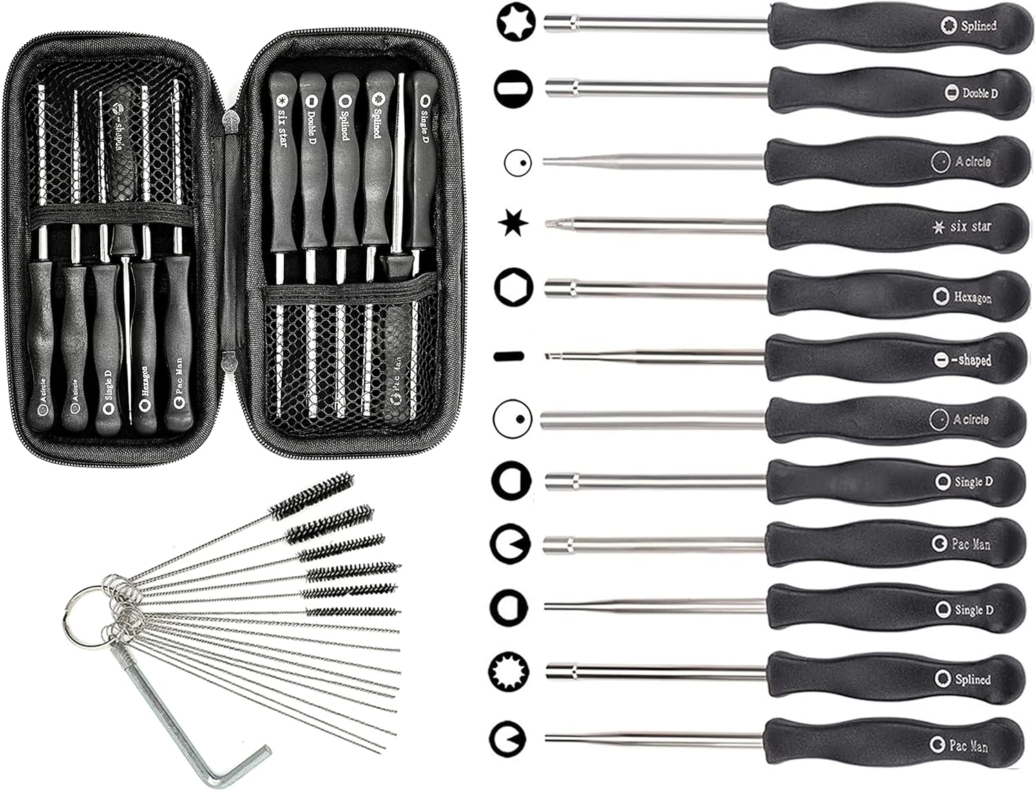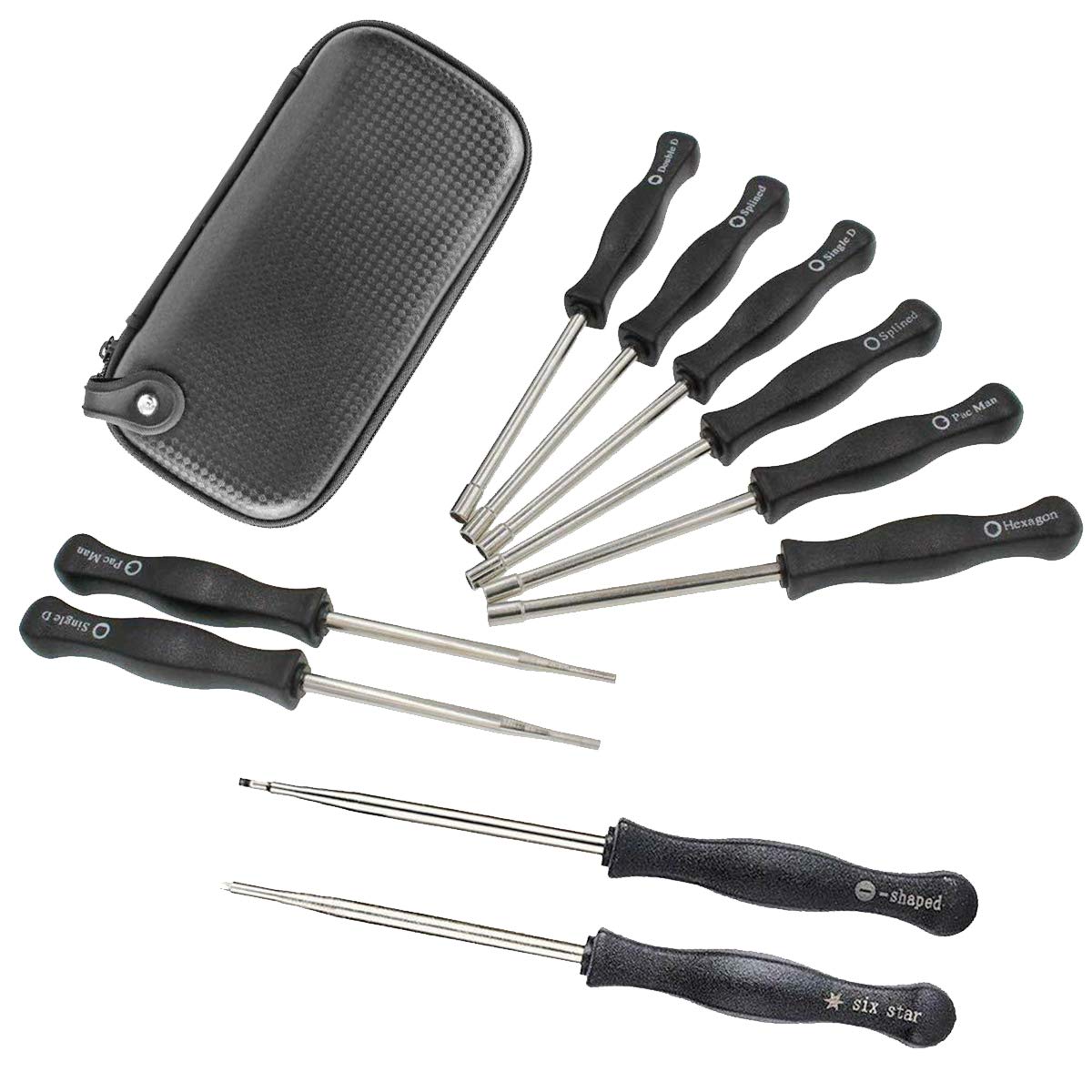 Tournevis Carburateur Mcculloch Kit De Réglage De Carburateur Pour Petit Moteur 2 Temps Poulan Husqvarna Echo STIHL MTD Ryobi Homelite Trimmer Weed-Eater Tronçonneuse (cannelée à 21 Dents + Hexagonale Pièces Détachées Husqvarna Rangement pratique : livré avec un sac de transport pour protéger et organiser les 14 outils contre la dispersion. Fonctionne pour Sears, pour Craftsman, pour Poulan, pour Husqvarna, pour Weedeater, pour Echo, pour Toro, pour Ryobi, pour Homelite, et tout ce qui utilise les vis de réglage cannelées. Lot de 12 Outils de réglage de carburateur avec Tournevis... Le tournevis réglage carburateur est un outil essentiel pour l'entretien et la réparation des moteurs à combustion. Que vous soyez un mécanicien professionnel ou un bricoleur passionné, vous apprécierez la précision et la facilité d'utilisation de cet outil Contenu de l'emballage : 14 tournevis., 1 brosse de nettoyage., 1 sac de rangement. 【Poignée polyvalente et marquée】Les tournevis sont marqués avec des types d'outils sur la poignée, ce qui les rend faciles à reconnaître et à utiliser pour les travaux d'entretien du carburateur sur les coupe-bordures, les tronçonneuses, les souffleuses à feuilles, les taille-haies, les coupe-bordures, les sécateurs, etc. JEU 11 TOURNEVIS REGLAGE CARBURATEUR WALBRO ZAMA HOMELITE HUSQVARNA | NHP Motoculture La poignée antidérapante offre stabilité et précision lors de l'utilisation. Diamètre extérieur : 7/32 - Longueur totale : 6-1/8 (mât en métal: 3 pouces Poignée en plastique : 8,9 cm. La poignée antidérapante vous permet de l'utiliser plus de stabilité et de précision. Caractéristiques : Type : kit de tournevis pour réglage du carburateur., Quantité : 14 pièces., Couleur : noir. Livré avec un sac de transport pour protéger les outils, également pour empêcher tous les tournevis de se disperser, facile d'avoir tous les 14 outils organisés en place, Tournevis marqué avec type d'outil sur la poignée, pour un maximum de commodité pour votre coupe-cordes, tronçonneuse, souffleur de feuilles, taille-haie, pour l'entretien du carburateur, et gardez le moteur dans les spécifications pour le reconnaître. Large compatibilité : s'adapte à la plupart des moteurs à 2 temps et fonctionne avec une variété de marques, y compris Echo, et plus qui utilisent des vis de réglage de style. Kit de 14 tournevis de réglage de carburateur : équipé de 14 tournevis différents pour réglage de carburateur, y compris 21 dents cannelées, 7 dents cannelées, simple D, petite tête simple D, double D, petite tête, hexagonale, forme, six étoiles et outils de nettoyage de carburateur. Fabriqué en acier inoxydable durable, poignée ergonomique et tige en métal.