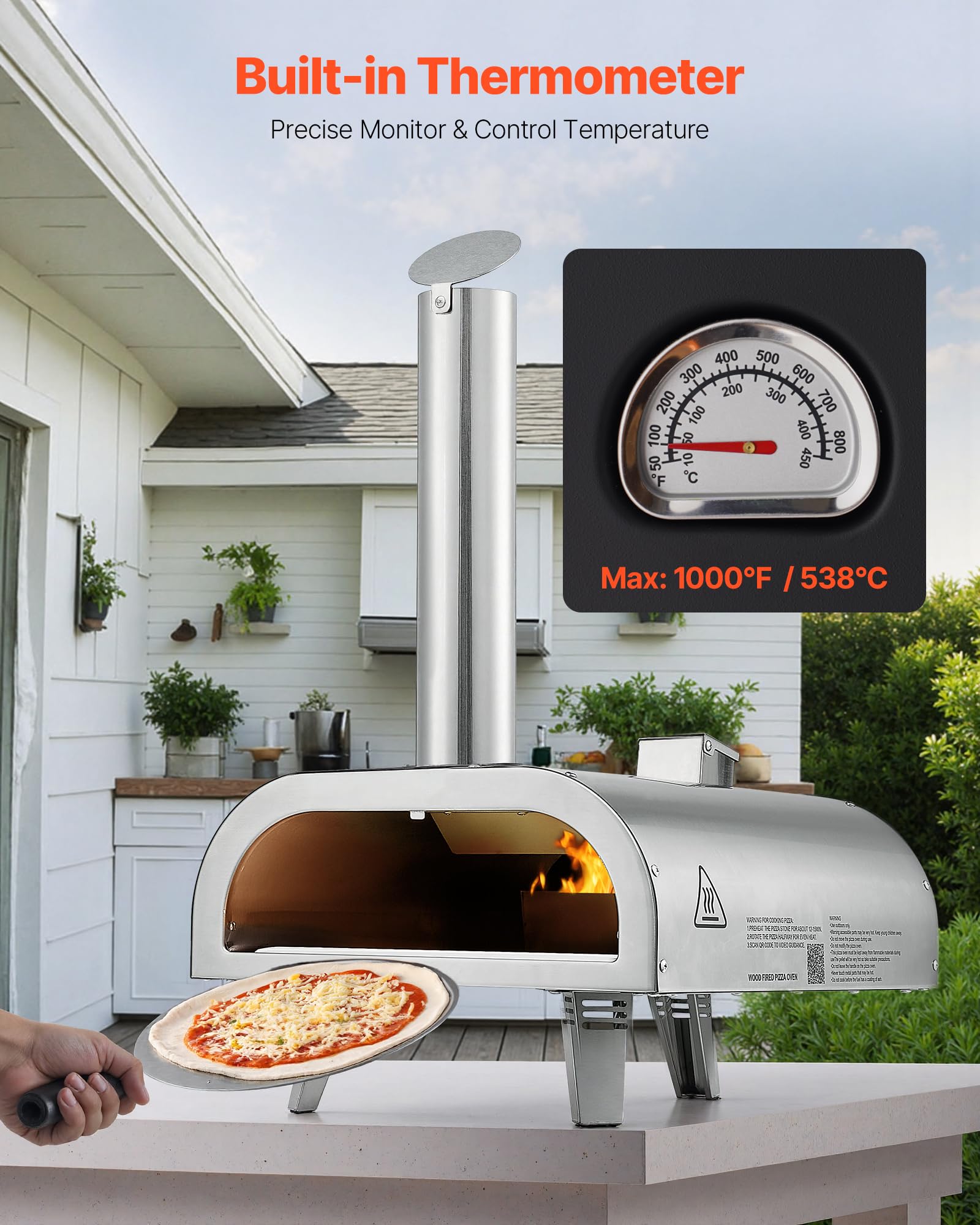 Un thermomètre intégré assure une température précise. Transformez votre jardin en pizzeria gastronomique et régalez-vous en famille avec des chefs-d'œuvre culinaires. Spécification Numéro de modèle de l'article : SRGP025 1 x ensemble de panneau de porte Chapeau de cheminée réglable Le chapeau de cheminée ajuste la direction de la fumée en fonction du vent, conçu pour empêcher la fumée de souffler vers les personnes, assurant ainsi le confort de l'utilisateur. Prêt en quelques minutes : Préchauffage à 316 °C en seulement 15 minutes, cuisson des pizzas en 90 secondes. Rangement facile Le four à pizza extérieur est doté de pieds et d'un sac de rangement inclus, pesant seulement 20,5 lb / 9,3 kg, ce qui le rend facile à ranger et à transporter n'importe où. Avec une température maximale de 538 °C, il cuit tout, des pizzas croustillantes aux légumes, en passant par les steaks et les ailes de poulet. Four à pizza extérieur de 12 pouces Le four à pizza à granulés crée une croûte croustillante et parfaite, avec cette délicieuse saveur fumée qui caractérise les fours à pizza au feu de bois. 1 x pelle à granulés Ce four VEVOR le fait ! Monte à 1000°C grâce aux granulés, copeaux de bois ou charbon. Cuisine des pizzas de 12 pouces mais aussi viandes, poissons ou légumes Contenu du coffret 1 x four à pizza, 1 x pierre à pizza 1 x Manuel d'utilisation Compatible avec une grande variété de combustibles, comme les granulés de bois, les copeaux de bois et le charbon de bois, il dispose d'une trémie de grande capacité pour une cuisson prolongée Des pizzas croustillantes aux steaks juteux, il répondra sans effort à toutes vos envies culinaires. Découvrez notre test complet du four à pizza d'extérieur VEVOR 12 pouces : performances, avantages et inconvénients pour réussir toutes vos pizzas maison au feu de bois 1 x poignée de pelle à granulés Matériau principal : acier inoxydable 430 Four à Pizza VEVOR Extérieur 12 Pouces, Portable Avec Pierre A Pizza Et Pieds Pliants Pour Grillades Et Camping Couleur Argent 93206849 Facile à transporter Ce four à pizza portable est doté de pieds légers, parfaits pour une utilisation en extérieur. 1 x ensemble de trémie 1 x sac de transport, 1 x thermomètre Facile à transporter et à installer, il est idéal pour le camping, les pique-niques et autres aventures en plein air 3 x Ensemble de jambes Dimensions du produit : 27,6 x 15,4 x 26,0 pouces / 700 x 390 x 660 mm 1 x assemblage de cheminée Four De Jardin Pizza Rapide Four à Pizza D'Extérieur 12 Pouces Four à Granulés Portable Arrière- Cour | FR Four Jardin Cuisson Rapide 538°C 1 x poignée de porte Poids du produit : 20,5 lb / 9,3 kg