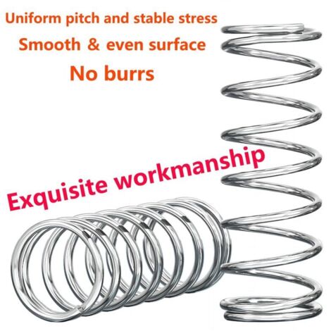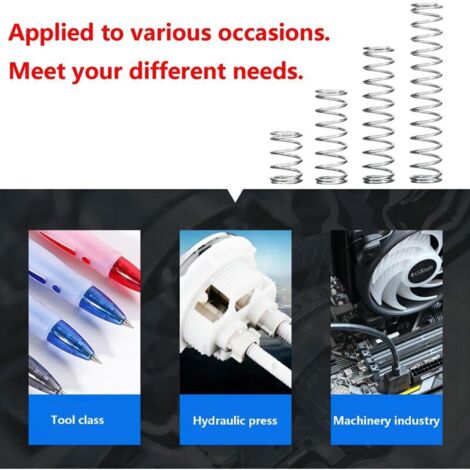 Durable et de haute qualité: fabriqués en acierà ressort de qualité supérieure, nos ressorts sont conçus pour durer grâceà une utilisation répétée. Fabriqué avec une attention méticuleuse aux détails et fabriquéà partir d'acierà ressort de haute qualité, ce ressort de compression est conçu pour répondreà vos besoins avec précision et fiabilité. Solution polyvalente: adapté aux projets automobiles, industriels et domestiques, notre ressort de compression offre une polyvalence et des performances fiables dans diverses applications. Compresseur De Ressort Amortisseur Lot De 15 Ressorts De Compression 8mm OD X 1mm Fil X 40mm Long - Argent - Marque Uxcell Pièces Mécaniques Uxcell Performances améliorées: notre ressort de compression en acierà ressort offre des performances exceptionnelles, fournissant la force et la stabilité nécessaires pour une large gamme d'applications. About this Item Avantage : une forte force exercée ne provoque pas de déformation Matériau : des matériaux en acier à ressort 65 Mn sont utilisés, qui ne se déforment pas facilement Dimensions : diamètre extérieur de 15 mm, diamètre du fil de 0,9 mm et longueur libre de 15 mm Caractéristique Ressort Mécanique Ressorts Acier 304 10 Ressorts Compression Acier Inox 304 - 7mm OD, 1mm Fil, 15mm Longueur - Pour Bricolage Ressorts Bricolage Ressorts Pour Suspension Mécanisme Des dispositifs mécaniques et machines aux systèmes de suspension et mécanismes de porte, ce ressort est conçu pour répondre aux exigences de diverses applications