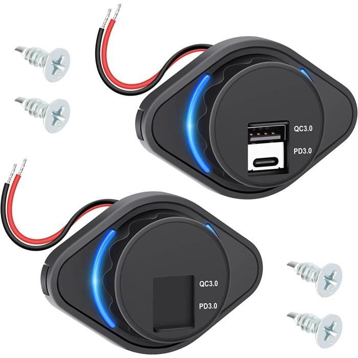 Daakro Prise de charge USB 72 W 12 V Dual QC3.0 USB et PD3.0 Accessoire Allume-cigare Intelligent Daakro Chargeur De Voiture 12 V - Double QC3.0 - USB A Et USB C - Lumière Verte Prise Usb Charge Rapide Max), puissance totale jusqu'à 72 W, tension d'entrée : 12-24 V, cette prise de panneau USB 12 V avec puce IC intelligente, charge rapide et efficace que le chargeur traditionnel 4 fois plus rapide ! Prise USB 72 W 12 V - Chargeur de voiture - Double QC3., 0 - USB A et USB C - Lumière rouge - Avec interrupteur - Prise USB encastrable - Adaptateur de charge rapide pour caravane, voiture, moto, camion, camping-car Design intelligent : notre design innovant de protection contre la poussière se distingue des housses de protection contre la poussière à ressort habituelles sur le marché. Chargeur à trois ports : deux ports QC3.0 et un port PD3.0. Il peut charger rapidement trois appareils compatibles en même temps et prend en charge le protocole PPS 72 W 3 ports | 2 ports QC3., 0 36 W | 1 PD3., 0 36 W ] 】La prise USB 3 ports 12 V a deux ports USB A QC3., 0 et un port USB-C PD3., 0, sortie USB-C : 5 V = 3 A, 9 V = 3 A, 12 V = 2,5 A, 15 V = 2 A, 18 V = 18 V = 1 ., 5 A, 2 A. Prise USB 12 V : la prise USB 12 V-24 V dans la voiture fournit jusqu'à 72 W de puissance maximale via un PD3.0 USB C et deux ports USB A QC3.0 pour charger rapidement jusqu'à trois appareils compatibles en même temps 0 V = 1,5 A, 12 V USB-C - Sortie : 5 V = 3 A, 9 V = 3 A, 12 V = 2,5 A, 15 V = 2 A, 18 V = 1,5 A, 20 V = 1,5 A, 12 V = 1,5 A, sortie USB-A : 5 V = 3 A, 9 V = 2 A, 12 V = 1,5 A., A (18 W. Interrupteur marche/arrêt non glissant : la prise USB 12 V dispose d'un élégant interrupteur à bouton-poussoir antidérapant qui a été ajouté à notre prise 12 V améliorée par rapport aux designs sans interrupteur sur le marché.