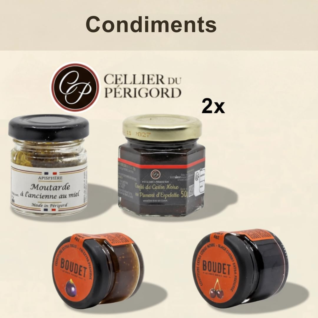 Voyage culinaire authentique qui culmine avec un bloc de foie gras IGP Périgord 100g en vedette. Cellier du Périgord - Calendrier Avent Gourmand 2025, 24 surprises artisanales, foie gras IGP 100g, 36x36cm Point de vue de la rédaction : " Ce calendrier de l avent 2025 alimentaire est le meilleur que nous ayons testé. En termes de qualité, de marque et de prix, nous ne pourrions pas demander mieux Chaque jour, découvrez une surprise artisanale sucrée ou salée issue du terroir du Sud-Ouest. Cellier du Périgord, maison familiale à Sarlat depuis 1973., Idéal pour débuter la magie des fêtes en beauté. Prêt à offrir : calendrier rouge-blanc-or format 36 x 36 x 5,7 cm avec 24 fenêtres. Chocolats et surprises festives : papillotes chocolat lait-praliné 2x6g ; croustilles enrobées chocolat (neige café, caramel, praliné) 6x4g ; papillotes pâte de fruit avec citations positives 2x10g. Chaque jour apporte sa part de magie pour petits et grands gourmands. Colis Gourmand - Cellier du Périgord Terrines : campagne piment d'Espelette 70g ; campagnarde jus de truffes noires 3% 65g ; confit de canard et noix du Périgord 65g ; forestière aux morilles 65g ; sylvestre aux cèpes 65g ; à l'armagnac 65g (Périgord). Découvrez l'art culinaire chaque jour : calendriers de l'avent gourmands Calendrier Noël Sud-ouest Terroir Calendrier De L'avent Le Ch'ti Calendrier Gourmand - Le Calendrier Gourmand Artisanal Sud-Ouest Sélection salée raffinée : 6 terrines artisanales (campagne piment d'Espelette 70g, jus de truffes noires 3%, confit canard aux noix, forestière morilles, sylvestre cèpes, armagnac) 5x65g + 1x70g ; condiments gourmands (moutarde ancienne miel 30g, confits figues et cerises). Condiments : moutarde ancienne au miel 30g (Périgord) ; confits cerises noires piment d'Espelette 50g, figues 50g (Lot-et-Garonne) ; confits figues 28g, cerises noires 28g. Chocolats : croustilles-neige chocolat lait et blanc arôme café 2x4g ; croustilles-caramel chocolat lait 2x4g ; croustilles-praliné chocolat lait 2x4g ; papillotes chocolat lait-praliné 2x6g. Calendrier rouge-blanc-or 24 fenêtres, carton (36 x 36 x 5,7 cm). 24 jours de découvertes gourmandes : chaque fenêtre révèle une spécialité artisanale du Sud-Ouest, du salé au sucré, pour patienter jusqu'à Noël avec plaisir.