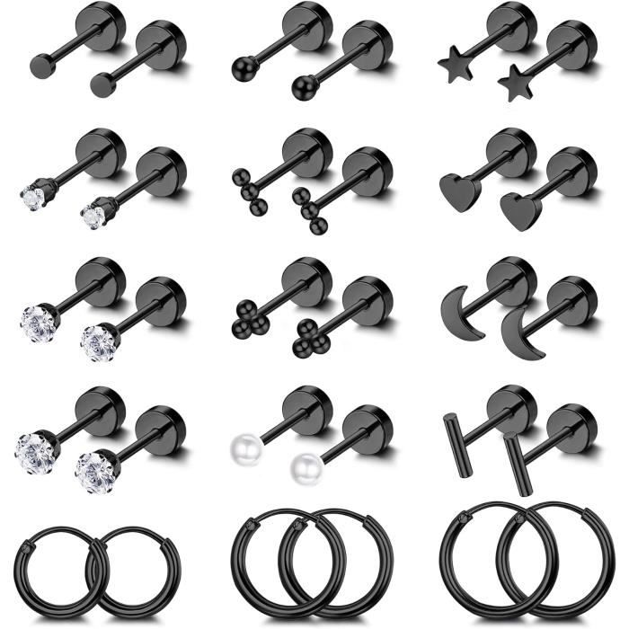 Vous pouvez aussi combiner différentes créoles pour varier les looks. 4 Pairs Boucles d'Oreilles Femme Acier Inoxydable Creoles Boucles d'Oreilles à Tige Hypoallergéniques Cartilage Tragus Helix Piercing Oreille Petites Boucles d'Oreilles Femme Argent/Or Stud Hoop Boucles d'oreilles : Ce boucle d'oreille fille set contient 7 paires de boucles d'oreilles élégantes, incluant des studs en CZ, jacket earrings, cartilage CZ, créoles pendantes, petites créoles, créoles dorées épaisses et modèles à pendentif. Coffret boucles d'oreilles dorées : Les Stud Hoop Boucles d'oreilles sont présentées dans un coffret élégant, parfait pour anniversaires ou occasions spéciales. Un ensemble intemporel pour style, polyvalence et confort. Ce set inclut des créoles dorées, cartilage hoop, piercing conch et studs en acier inoxydable bijoux, permettant de mixer plusieurs piercings. Confortables boucles d'oreilles à dos plat : Fabriquées en acier inoxydable bijoux et cuivre, ces boucles d’oreilles acier inoxydable sont hypoallergéniques et sans nickel. Boucles Cartilage Helix Lot De 5 Boucles D'oreilles Argent 925 Adramata - Zircone Cubique 3-7mm - Homme Et Femme - Cartilage Et Lobe Lot 5 Paires Tailles 3-7mm Les fermoirs flexibles des petites créoles s’ouvrent facilement, tandis que les boucles acier inoxydable bijoux offrent une tenue durable. Boucles d'oreilles pour multiples piercings : Ce percing au oreille acier inoxydable pour filles et femmes a un gauge 20G (0,8 mm), diamètre intérieur des créoles 8/10 mm, longueur du clou 6 mm. Le fermoir sécurisé garde les boucles de piercing conch ou créoles acier inoxydable en place toute la journée. Parfait pour piercing oreille acier inoxydable, piercing helix, piercing oreille acier chirurgical ou boucles d’oreilles lobes. Seules ou combinées, elles ajoutent une touche tendance et élégante à toutes vos tenues Tragus Piercing Oreille ADRAMATA Lot De 21 Paires De Boucles D'oreilles En Acier Inoxydable Pour Femme Et Homme, Petites Boucles D'oreilles à Bouton Pour Cartilage Trago Daith Helix Ear Piercing Confortables Boucles Le dos plat réduit la pression et les irritations, parfait pour dormir, se doucher ou faire du sport.