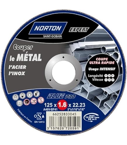 Une coupe plus rapide, plus précise , plus nette et sans bavure , usage intensif Disque de tronçonnage plat Adapté pour les applications sur acier et acier inoxydable. Disque A Tronconner Disque De Tronçonnage Pour Inox 125 Mm X 1.0 X 22,2 Meules Tronçonnage Métal Norton Les meules de tronçonnage métal - NORTON EXPERT vous offrent une coupe plus rapide, plus précise, plus nette et sans bavure Lot de 4 1 disques de tronçonnage Extrême pour métal, idéal pour des coupes rapides et nettes. Chaque disque a un diamètre de 115 mm, une épaisseur de 1.6 mm et un alésage de 22.2 mm. Optimisés pour minimiser la perte de matériau et réduire la production de poussière, ces disques sont parfaits pour des travaux intensifs sur le métal Meules de tronçonnage Norton Quantum3 | Norton Abrasives | French