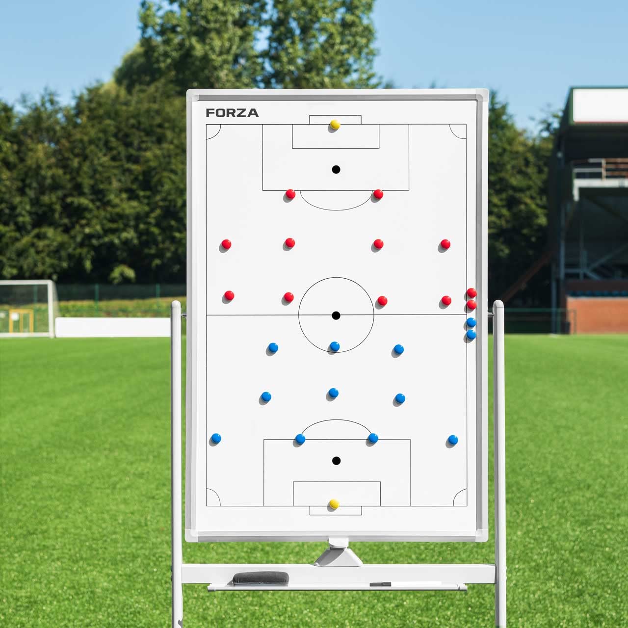 FORZA Tableau d'Entraînement Sportif à Double Face de 90cm x 60cm, tableau blanc magnétique avec marqueurs, stylo et brosse inclus. Achetez maintenant AUTRE Comprend des marqueurs magnétiques, des clips métalliques, un stylo effaçable et une gomme Tableau D'entraînement Football FORZA Tableau D’Entraînement Double Face | Net World Sports Tableau Coach Sportif Spécifications du FORZA Tableau d’Entraînement à Double Face DIMENSIONS Taille : 120 cm x 90 cm, Poids : 8 kg TABLEAU D’ENTRAÎNEMENT À DOUBLE FACE – Ce tableau d’entraînement de football de 120 cm x 90 cm présente une vue complète du terrain d'un côté et une zone tactique détaillée de l'autre, parfait pour une stratégie générale et une analyse détaillée des jeux lors des séances d'entraînement ou des discussions à la mi-temps. CONÇU POUR DURER – Fabriqué avec un cadre en aluminium robuste et renforcé avec des protecteurs d'angle en plastique durable, ce tableau blanc est conçu pour résister à une utilisation fréquente, garantissant une performance durable pour les clubs amateurs ou les équipes professionnelles. Carnet de coach, bloc-notes, demi-terrain. 4.00€ 3.60€ ; Table Tactique Magnétique 60x90 cm Stand – Coaching Football. 290.00€ 229.95€ ; Cartes d'Arbitrage ZINA... Chevalet Double Face Tableau,Chevalet Réglable avec Rangement pour Protecteurs d'angle en plastique, Clips métalliques L’un côté offre une vue complète avec des marquages réglementaires tandis que l’autre côté offre une vue concentrée pour une analyse approfondie MATÉRIAUX Surface effaçable à sec, Aluminium ultra-résistant