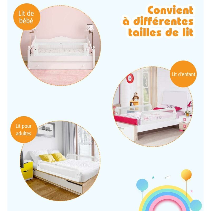 Barrière Rabattable: La barrière peut être rabattue vers le bas pour faciliter l'entrée et la sortie. Attributs : --Assurance de la sécurité de votre bébé: Notre barrière de lit peut empêche votre enfant de tomber accidentellement. La conception de la maille permet à votre bébé d'être toujours dans votre champ de vision Protégez votre bébé avec notre barrière de lit sécurisée, conçue pour le confort et la sécurité. En outre, la housse extérieure est munie d'une fermeture éclair qui permet de l'enlever et de la nettoyer. Cela vous permet d’économiser du temps et des efforts. Installation Sans Outils: Conçu pour une installation sans outil, le processus d'installation est rapide et facile. Pratique, la barrière est rabattable pour faciliter l'accès au lit, et sa housse en tissu Oxford est lavable. Sentasi Barrière De Lit Bébé Et Enfant 150cm, Barriere De Securite Enfant Lit avec élévation De plus, sa conception en maille respirante et confortable vous permet de surveiller les mouvements de votre bébé. Sa structure en métal robuste, associée à une barre en mousse antichoc, offre une protection optimale contre les chocs. Barrière de Lit Sûre et Sécurisée: Notre barrière de lit enfant utilise une structure en métal et ajoute une barre enveloppée dans une mousse antichoc douce pour protéger le bébé des impacts. Barrière De Lit Pliable Pour Bébé/enfant Barre De Lit Rabattable Avec... Sangle Fixation Sans Perçage GOPLUS Barrière De Lit Pliable Et Portable Avec Mécanisme à Double Bouton Pour Lit De Bébé,Lit D Barriere Enfant Installation sans outils en quelques minutes, elle s'adapte à la plupart des lits standard.