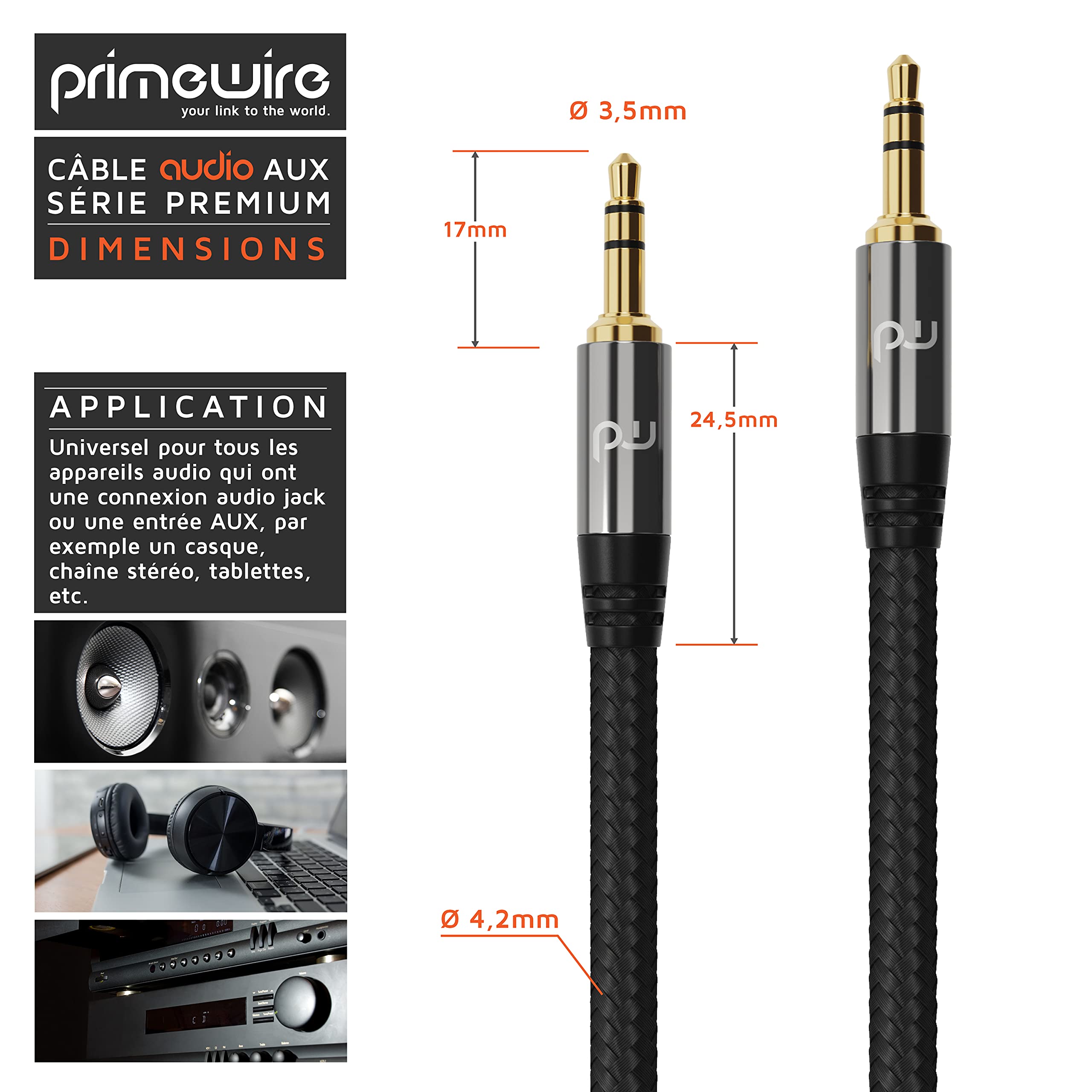 Connecteur Plaqué Or OFC Câble Auxiliaire AutoTrends, Mâle à Mâle 1/8 Po, 3 Pi | Canadian Tire Transmission Audio Haute Fidélité Connecteurs moulés sous pression, coque entièrement métallique très robuste Idéal pour transférer les signaux audio de la sortie Jack d'un smartphone à la radio stéréo de la voiture. Diamètre Ø de la fiche : signal gauche (embout) : 7x 0,09mm ; signal droit (anneau) : 33x 0,08mm ; terre (masse) : 35 x 0,08mm Le câble jack Primewire, est le meilleur choix pour connecter des smartphones, des lecteurs de CD, ou même des contrôleurs Playstation PS4 et PS5 ainsi que MS Xbox One X/S et Series X/S avec l'entrée AUX d'un haut-parleur amplifié. | protection anti-pliage pour une grande stabilité et une grande solidité. Vous pouvez également l'utiliser comme câble de remplacement pour les casques avec entrée jack 3,5 mm (par exemple, Teufel Aureol Real Over Ear, Philips Fidelio X2, OneOdio A70, Sennheiser HD 4., 50). La condition préalable à l'utilisation est, une sortie jack sur l'appareil source et une entrée jack sur l'appareil de lecture, comme une entrée écouteurs / casque AUX. Le double blindage améliore la protection contre les interférences et le revêtement en nylon-PVC de haute qualité assure une optimale résistance à l'usure. Lutte Efficacité gérer cable jack 2.5 3.5 male male Incertain perte Pétition Aux casques, haut-parleurs actifs, chaînes hi-fi, autoradios, etc. De la marque High-Tech Place votre produit vous offrira une qualite irreprochable ! 1) Assemblez les équipements audio stéréo 2) câble audio stéréo de mini prise mâle de 3,5 mm 1/8 3) mâle à mâle 4) Longueur: 5M Câble audio universel premium stéréo jack 3,5mm mâle vers mâle Primewire : compatible avec tous les appareils audio dotés d'une prise jack, tels que les tablettes et les ordinateurs portables, les chaînes hi-fi et les autoradios, les smartphones, etc. REMARQUE : pour assurer l'insertion correcte de la fiche Jack, retirez les étuis de protection des smartphones, car ils peuvent empêcher le bon ajustement des contacts. Les smartphones dotés d'une sortie casque : Samsung Galaxy S 9 et S 10, note 9 ; Huawei Mate 9, Mate 20, Sony Xperia XA2, Xiaomi Mi 9T, note 10, Poco F2, OnePlus 6 ; Google Chromcast Audio et les anciens modèles de l’iPhone. Spécifications / Dimensions : Fiche jack stéréo 3,5 mm mâle vers fiche Jack jack stéréo 3,5 mm mâle Compatibilité universelle, pour tous les appareils avec entrées AUX, Casque, écouteurs, Couleur : noir Gris. Vous pouvez connecter votre ordinateur à votre chaîne hi-fi, diffuser de la musique en continu de votre smartphone à votre autoradio et connecter votre console de jeu Playstation ou xBox à des haut-parleurs alimentés, etc. Modèle : câble audio stéréo HQ Premium Primewire de 5 mètres. Une compatibilité universelle avec tous les dispositifs audio qui disposent d'une connexion jack audio ou d'une entrée / sortie AUX. Convient aux : téléphones portable, smartphones, iPhone, iPod, tablette, PC, lecteur MP3, lecteur CD, bal Protection anti-pliage pour une grande stabilité Modèle 5 mètres : 304863