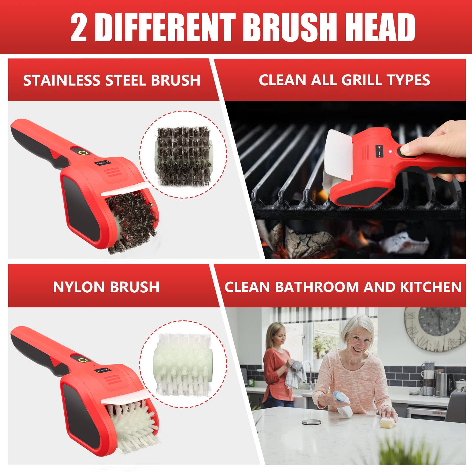 LEDANDER Brosse électrique pour barbecue,brosse de nettoyage,brosse à Nettoyeur Electrique De Grille Barbecue Augot Brosse Nettoyage Électrique, Brosse Électrique Nettoyage Rotative Sans Fil Avec 7 Têtes De Brosse Barbecue Sans Fil Protection anti-surcharge/blocage moteur . Idéale pour grils à gaz, charbon, planchas et fumoirs. 🔋 RECHARGEABLE & LONGUE AUTONOMIE:Batterie lithium 2600mAh (3., 7V) offre ≥60 min d'utilisation continue. La brosse Roadtime, c'est la révolution pour nettoyer ton barbecue sans effort ! Rechargeable et sans fil, elle tourne à 360° avec 2 vitesses pour s'adapter à toutes les saletés Recharge USB-C rapide (3h)., Indicateur LED à 5 niveaux . Ce nettoyant innovant élimine la graisse et la saleté sans produits chimiques agressifs, simplifiant ainsi l'entretien de votre gril. Parfait pour tous les types de barbecues, c'est l'accessoire indispensable des passionnés de grillades exigeants Coque en PA66 résistante à 200°C. Compatible avec tous types de barbecues.