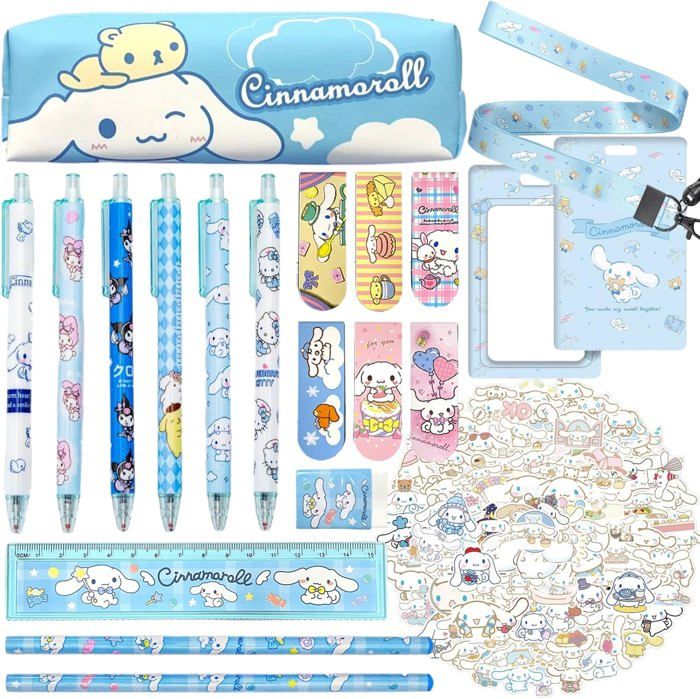 Emballage: Emballage d'affichage, Recyclable. Design/motif: À carreaux, Beignet, Logo, Imprimé, Texte. Produit sous licence officielle. Kit Fournitures Scolaires Personnage Sanrio Sanrio Cinnamoroll Stationery Office Desk Set Ensemble Stylo Gomme Crayon Renklendirmek İçin Cinnamoroll boyama Nous vous présentons notre adorable coffret cadeau Cinnamoroll, le cadeau personnalisé parfait pour toutes les occasions. Chaque boîte est personnalisée avec... Ensemble de Mini Tampons Cinnamoroll – Monoe Shop