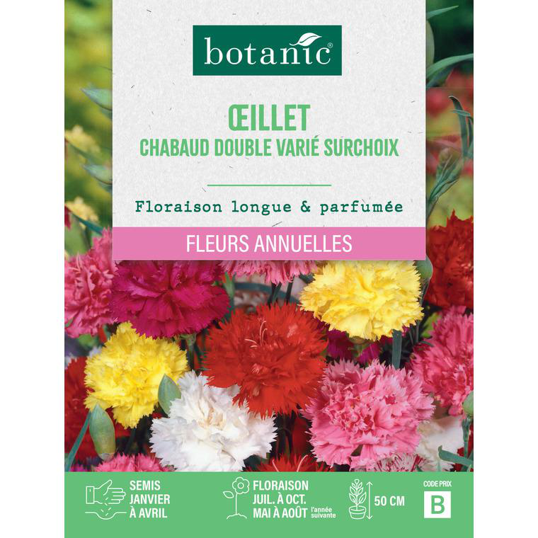 Merci de votre compréhension. Avec ses petites fleurs regroupées en corymbes en haut des tiges, il forme de véritables bouquets parfumés. Ces bouquets sont dans les tons rose, pourpres et blancs. La variété des œillets des fleuristes ou Dianthus caryophyllus est une plante vivace à fleurs doubles très parfumée Description :Les graines de cet œillet vivace non-OGM offrent une profusion de fleurs colorées dans des tons vifs de violet, rouge, rose et bleu. Arôme classique et captivant – Chaque fleur dégage un parfum épicé et sucré caractéristique des œillets, apportant charme et fraîcheur à votre espace extérieur. Adaptabilité exceptionnelle – Les feuilles vert-gris tolèrent bien le soleil et la chaleur, assurant une croissance optimale même sous conditions variées. Plante robuste et durable – Tiges solides idéales pour les compositions florales ou l’embellissement de votre jardin avec des fleurs vivaces à longue floraison. Semis conseillé de 2 à 3 graines par plant, avec germination rapide en environ 14 jours sous une température de 18 à 21°C. Graines de Dianthus arenarius - Semences d'Œillet des sables En raison du calcul manuel, la quantité peut varier de 1 à 5 pièces. Connues pour leur parfum épicé et sucré, ces plantes sont idéales pour embellir les jardins, les balcons ou créer des compositions florales. Nom de l'article : GrainesCaractéristiques : Facile d'entretien, Rendement élevé, Culture facileContenu : 1 000 grainesRemarques :La quantité est d'environ 1 000 pièces. Venez découvrir notre sélection d'œillets sur notre site Ernest Turc. Une dizaine de variétés sont disponibles à la vente Graines Fleurs Rouges Jardin Graines D'Œillet Grenadin - Semences De Dianthus Caryophyllus "grenadin" Graine D'oeillet Quand Planter Ce mélange de graines est parfait pour les amateurs de jardinage souhaitant un jardin esthétique et aromatique avec peu d’entretien.