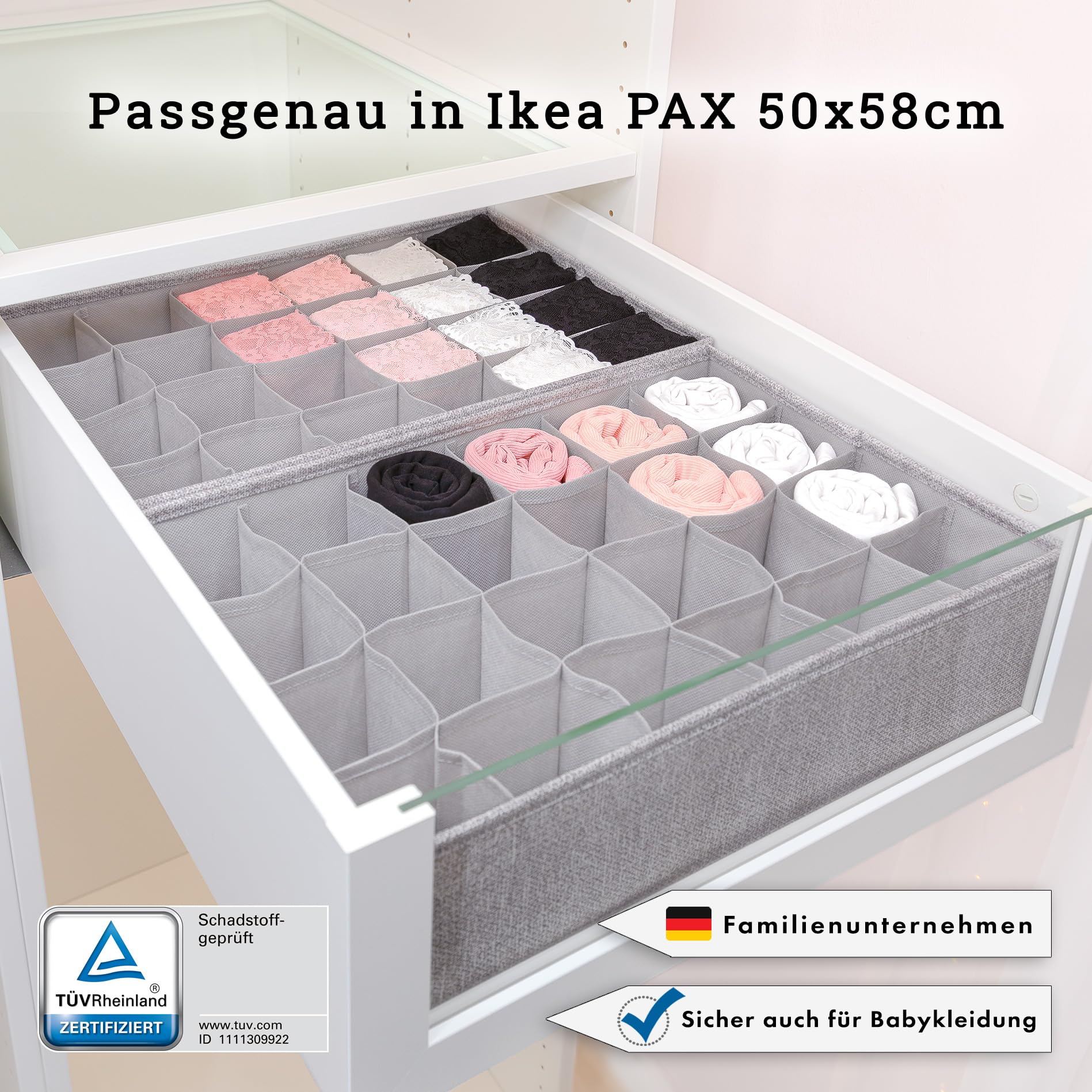 Notre ensemble organisateur de tiroir à sous-vêtements pliable est fabriqué avec soin. Facile à assembler, avec une structure robuste, des matériaux inodores et des fermetures à glissière et des coutures durables ORDRE AU QUOTIDIEN: Fini les recherches stressantes le matin : grâce à cet organisateur vêtements, vos tiroirs restent toujours bien organisés. Boite Rangement ORLISA Lot De 4 Organiseurs De Tiroirs Compatibles Avec L'armoire PAX 50 X 58 Cm, Pliables Et Solides, Boîtes De Rangement Pour Vêtements, Beige Boite Cravate COMPATIBLE AVEC LES ARMOIRES IKEA PAX: Ce lot comprend 2 grandes boîtes (26×24×11 cm) et 2 moyennes (26×16×11 cm). STRUCTURE RENFORCÉE ET STABLE: Grâce au fond renforcé amélioré, le rangement sous-vêtements garde sa stabilité même rempli de jeans ou d’articles pour bébé. UTILISATION POLYVALENTE: Que ce soit dans la chambre, la chambre d’enfant ou le dressing, ces rangements dressing s’adaptent à tous les espaces. Maison - Découvrez notre offre Yucch Lot de 8 Boites de Rangement, Rangement Tiroir Pliable et, Organisateur Tiroir Ideal pour Soutiens-Gorge, Chaussettes, sou22. Livraison gratuite à partir de 25€* | Paiement sécurisé | 4x possible | Retour simple et rapide PAX / STORKLINTA combinaison armoire, blanc/motif chêne, 150x60x201 cm Idéal comme rangement armoire au quotidien MATÉRIAUX DE QUALITÉ SUPÉRIEURE: Fabriqué en tissu non tissé épais et respirant de 80 g, renforcé par des panneaux rigides en PP de 800 g. Elles s’intègrent facilement dans les tiroirs sans perte d’espace, offrant à chaque vêtement sa place bien définie et toujours à portée de main.