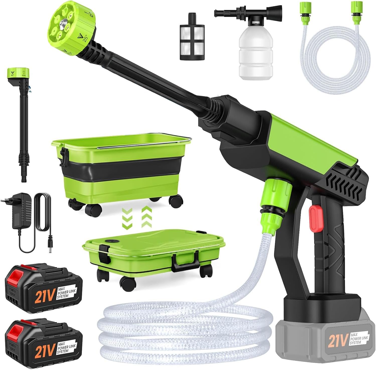 2 Batteries de 2000 mAh et 1 Chargeur: Cet pistolet à eau haute pression est livré avec deux batteries de 2000 mAh et un chargeur; De plus, il est compatible avec les batteries Makita. Nettoyeur Haute Pression Sans Balai: L'pistolet haute pression sur batterie est équipé d'un puissant moteur sans balais, garantissant une durabilité et une puissance exceptionnelles; L'nettoyeur haute pression sur batterie peut atteindre une pression maximale de 728 PSI, un débit allant jusqu'à 400 L/h et une distance de pulvérisation allant jusqu'à 9 mètres Les batteries sont équipées de coussinets de protection en silicone et les voyants lumineux indiquent la charge restante; Dites adieu aux cordons d'alimentation et profitez de la liberté sans fil, qui vous permet de nettoyer efficacement à tout moment et en tout lieu, que ce soit à la maison ou à l'extérieur Nettoyeur Haute Pression Sur Batterie Sans Fil Sans Balais Avec 2x 4000mah Batteries Buse 6 En 1 Affichage Du Niveau De Batterie 95901620 Précautions d'usage: Avant d'utiliser l'nettoyeur haute pression a batterie pour la première fois, vous devez purger l'air du tuyau; Une fois l'pistolet a eau haute pression démarré, ne changez pas l'effet de pulvérisation; N'utilisez pas d'eau trouble, boueuse ou corrosive (y compris les nettoyants pour vitres, les nutriments pour plantes, les engrais, etc); Après avoir utilisé de l'eau de mer, rincez la machine à l'eau douce Personnalisez les réglages selon vos besoins grâce aux engrenages et aux buses pour un nettoyage optimal.[Moteur sans balais]Notre nettoyeur haute pression utilise un moteur sans balais en cuivre pur avec un niveau sonore de seulement 30 à 50 dB Pression 728 PSI Débit 400 L/h Fexrror Nettoyeur Haute Pression Sans Fil, Nettoyeur Haute Pression Avec Buse 6 En 1, 2 X 2000mAh Batteries, Pulvérisateur De Mousse, Adapté Pour Voiture, Jardin, Terrasse Pour Voiture Jardin Terrasse Capacité des batteries : 4,0 Ah x 2Alimentation : BatterieMoteur : Sans balaisHAUTE PRESSION D'EAU POUR UN NETTOYAGE PLUS RAPIDE①Pression maximale : 1080 PSI/75 bar②Puissance nominale : 290 W③Débit d'eau : 9,5 L/min④Longueur du tuyau d'arrosage : 5 m3 MODES D'ASPIRATION DE L'EAUInterrupteur flexible, accès facile à l'eauSeau auto-amorçantBouteille auto-amorçantePiscine auto...