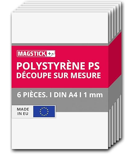 Plaques Polystyrène A4 1mm Set De 6 Plaques En Polystyrène Blanc I DIN A4 Plaques Dures En Plastique PS Découpes I 21 X 29,7 Cm I épaisseur 2 Mm I Pour Modélisme Architecture DIY I Mag265 Plaque Plastique Rigide A4 Emballage et Service Soignés : Plaques rigides en plastique ps chaque lot comprend 6 feuilles protégées individuellement pour garantir une livraison en toute sécurité. Ces plaques se caractérisent par leur surface lisse, leur grande réflexion de la lumière et leur aspect attrayant. Plaque Pvc Rigide 1 Mm Plaque PVC Blanc... Plaques en polystyrène - 20 x 30 cm - Plaques en polystyrène Matériau PP de Qualité Supérieure : Plaque polystyrene robustes mais souples, légères et durables, elles offrent une excellente résistance, une grande solidité et une bonne résistance à la corrosion. Nous offrons un service client complet. Lot de 2 plaques A4 en PVC blanc - 21 x 29,7 cm - Épaisseur La finition mate professionnelle améliore l'impact visuel de vos créations. Adaptées au griffonnage, à la sculpture, au gaufrage et à la découpe, elles peuvent être utilisées pour réaliser des décorations murales, des sculptures et diverses œuvres d'art créatives, offrant des résultats professionnels raffinés. Elles permettent de donner vie à des idées créatives tout en offrant un bon rapport qualité-prix et une fonctionnalité pratique. Faciles à découper, percer, poncer, coller et peindre. Large gamme d'applications : Plaque plastique rigide adaptées à la fabrication de maquettes, à l'architecture, à l'artisanat et plus encore. Format A4 Standard : Chaque lot contient 6 feuilles de 21 x 29,7 cm (DIN A4) blanc mat plaque plastique rigide, d'une épaisseur de 1 mm qui offre un équilibre entre stabilité et flexibilité, idéal pour les maquettes détaillées et les travaux manuels elles peuvent être facilement découpées, percées, poncées ou peintes pour répondre à divers besoins créatifs. Le favori des amateurs de bricolage : Plaque polystyrene polyvalentes et appréciées des amateurs, elles conviennent à de nombreux projets de bricolage.