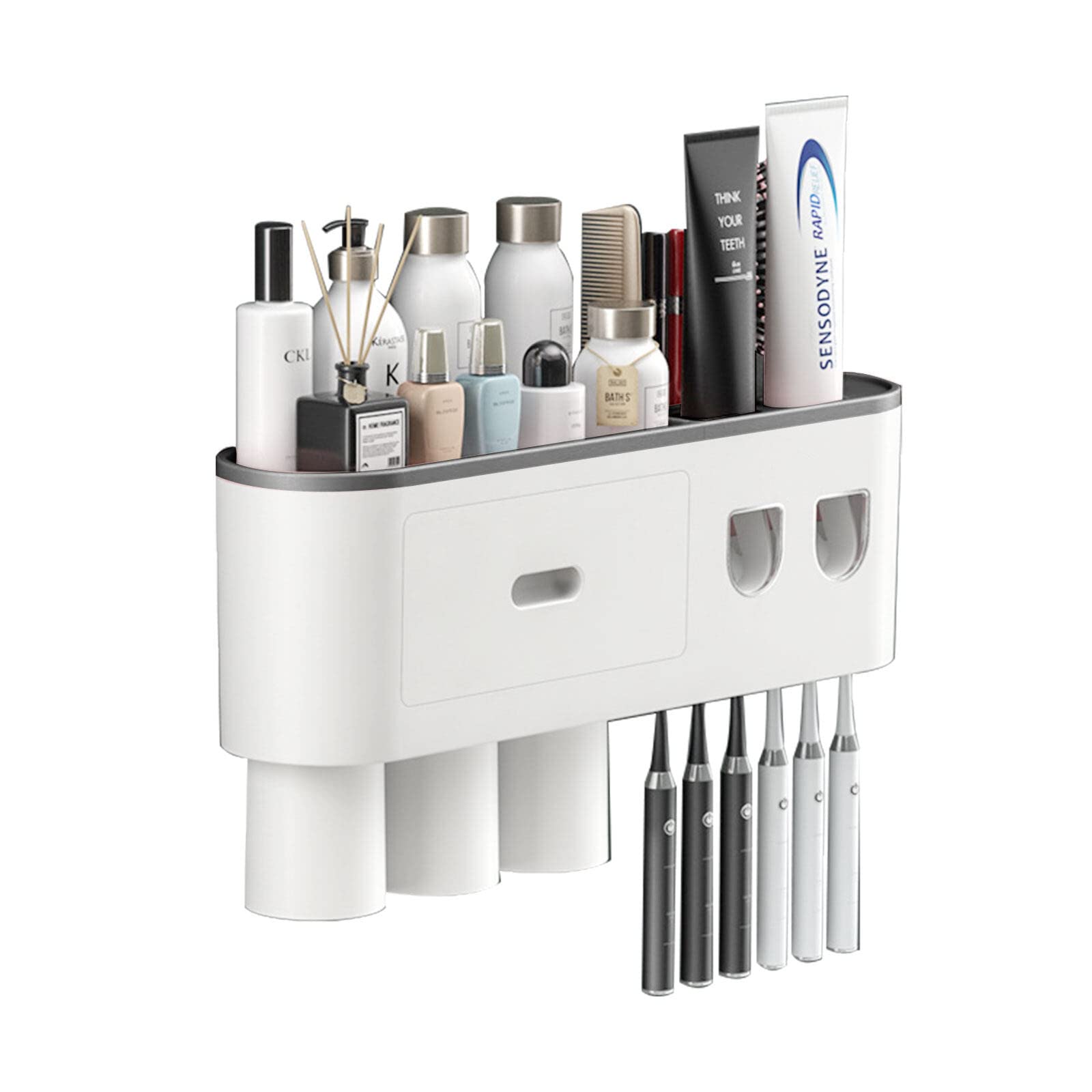 Il suffit de nettoyer le mur, d'appuyer fermement sur les bandes adhésives et de le laisser coller pendant 2 heures. Distributeur de Dentifrice pour Salle de Bain, Support Mural pour Brosse à Dents avec Double Distributeur Automatique de Dentifrice, 3 Tasses et tiroir pour Salle de Bain Stockez librement les cosmétiques et les fournitures de salle de bain fréquemment utilisés, et gardez votre comptoir de salle de bain propre et organisé. (Veuillez vous assurer qu'il est fermement fixé avant de placer des objets lourds dessus pour plus de sécurité., ) Le distributeur de brosse à dents est adapté à tous les tubes de dentifrice avec un diamètre de trou de 1 à 1,2 cm. Le porte-brosse à dents mural et le distributeur de dentifrice mural peuvent être facilement démontés pour un nettoyage pratique. Les 2 gobelets magnétiques pour soins bucco-dentaires disposent d'un design de drainage inversé pour éviter la saleté et les taches d'eau. Distributeur Automatique De Dentifrice Mural Porte-brosse à Dents Anti Poussiere Support De Rangement Mural Ensemble Accessoires De Salle De Bain 88400572 Le support de brosse à dents HubiCare peut être installé à l'aide des autocollants adhésifs inclus dans le colis, et peut être facilement installé sans endommager le mur. Distributeur de dentifrice pour 6 brosses à dents : le support mural multifonction dispose d'un distributeur automatique de dentifrice, vous permettant de presser facilement le dentifrice sans gaspillage. Installation facile sans perforation : pas de trous ou de perçage nécessaires pour l'installation. Jusqu'à 6 brosses à dents peuvent être stockées en même temps, ce qui la rend parfaite pour toute la famille. ✓[2 gobelets à brosse à dents, rangement... Rangement Salle De Bain Porte-brosses à Dents Pour Organisateur De Salle De Bain, Distributeur Automatique De Dentifrice, Kit De Presse Mural Pour Salle De Bain, Accessoires De Salle De Bain, Bleu Organisateur Salle De Bain Adhésif Jusqu'à 6 brosses à dents peuvent être stockées en même temps, ce qui la rend parfaite pour toute la famille.