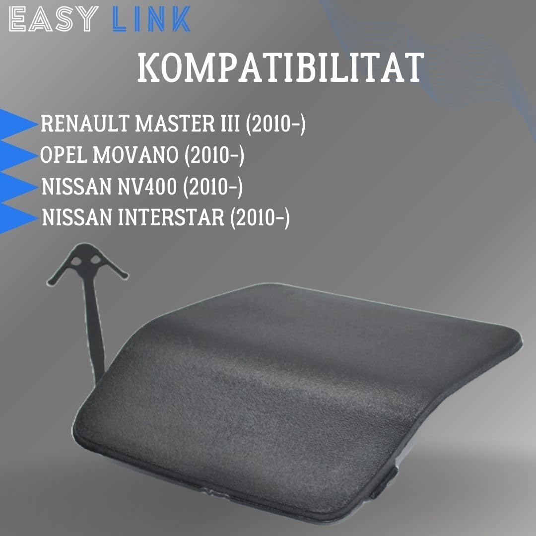 Ce cache est conçue pour protéger le crochet de remorquage situé à l'avant du véhicule. Compatible pour NISSAN NV400 (tous modèles à partir de 2010). COUVERCLE DU CROCHET DE REMORQUAGE. Compatible pour RENAULT MASTER III (tous modèles à partir de 2010 Ajustement parfait : spécialement conçu pour les modèles Master/Movano/NV400/Interstar, garantit un ajustement précis aux trous de pare-chocs d'usine Remplacement Couvercle De Crochet Meilleures Anneau Remorquage Renault Master - Noël 2025 Compatible Renault Master III Opel Movano Compatible avec Renault Master III (à partir de 2010). Montage facile : montage rapide et facile sans outils grâce aux fixations fournies en usine Peinturabilité : le capuchon peut être peint dans la couleur du chariot pour s'adapter parfaitement au design du pare-chocs Modèles applicables: La housse de remorque de voiture est compatible avec MASTER III, NV400 et MOVANO. Remplacement parfait: la housse de crochet de remorquage de voiture est conçue selon la voiture d'origine, qui correspond parfaitement à la voiture d'origine et peut être remplacée directement Couvercle D'Oeil De Crochet De Remorquage De Pare-Chocs Capuchon De Compatible avec Nissan Interstar (à partir de 2010). Matériau de haute qualité : fabriqué en plastique ABS durable, résistant aux intempéries et aux contraintes mécaniques Compatible avec Opel Movano (à partir de 2010).