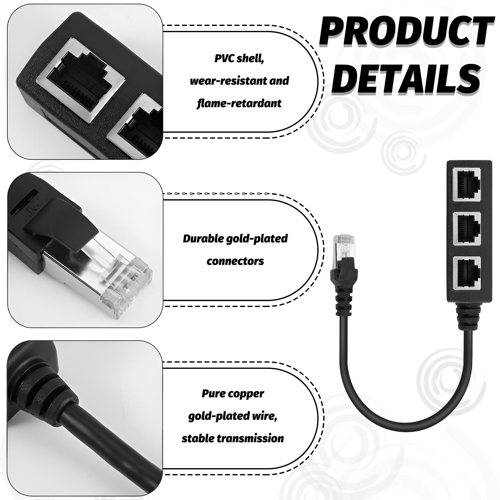 【Multiprise Ethernetrj45 1 Vers 3】Le Coupleur Rj45 1 Mâle Vers 3 Femelles Permet À Trois Ordinateurs De Partager Un Câble Ethernet En Même Temps, Mais Ne Prend Pas En Charge Trois Ordinateurs Se Connectant À Internet En Même Temps. 【Repartiteur Cable Ethernet Rj45】Ce Fabriqué À Partir D'un Noyau De Fer Plaqué Or À Haute Qualité Transmission Stable, Avec Des Aiguilles En Cuivre Pur Plaquées Or, Assurant Une Connexion De Haute Qualité Et Durable. Le Répartiteur Lan 1 À 3 Est Compatible Avec L'adsl, Les Hubs, Les Commutateurs, Les Téléviseurs, Les Décodeurs, Les Routeurs, Les Appareils Wifi, Les Ordinateurs. Avec D'excellentes Performances De Connexion Et De Transmission. Convient Pour Les Câbles Réseau Cat5, Cat5e, Cat6, Cat7., 【Protection Du Signal】Le Séparateur Ethernet Peut Protéger Les Interférences De Signal Électromagnétique Externe Et Éviter D'endommager Le Signal Internet. [Répartiteur de câble réseau RJ45 1 vers 3]Le coupleur RJ45 1 mâle vers 3 femelles permet à trois ordinateurs de partager un câble réseau simultanément, mais ne permet pas à trois ordinateurs d'accéder simultanément à Internet Adaptateur Rj45 Pour Repartiteur OHSN Coupleur Rj45 1 MâLe à 3 Femelle Adaptateur Rj45 1 MâLe Vers 2 Femelles Multiprise Ethernet RéPartiteur Switch Ports Multi Splitter Fibre Port Prise Double Repartiteur Pour JUZ - soit un répartiteur net adaptateur répartiteur RJ45 Câble