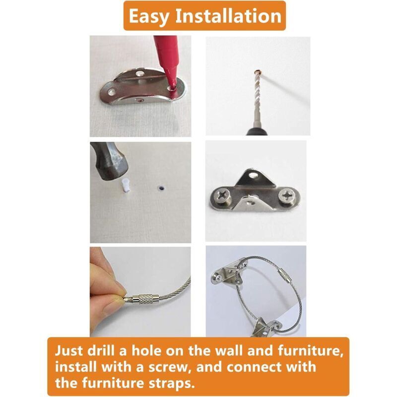 Tous les types de mobilier présentent un risque, autant les meubles à prix réduits et les meubles de haute qualité, les bibliothèques hautes et les bibliothèques basses, les coffres à tiroirs, les commodes hautes, les armoires, les meubles avec étagères et/ou portes et plus encore. Les enfants peuvent se promener dans une pièce quand on ne s'y attend pas, même sous étroite surveillance. Éventuellement, les enfants apprendront à défaire les loquets et la commode restera un risque la inclinaison. QUINCAILLERIE INCLUSE - Notre kit de sécurité anti-basculement comprend 8 sangles et tout le matériel nécessaire à la pose et les instructions d’installation; un bloque- porte est également fourni pour éviter que des doigts ne soient pincés par une porte qui claque. Les loquets d'armoire ne sont pas désigné pour remplacer les ancrages de meubles. Lot de 2 sangles anti-basculement pour TV et meubles PROTÉGEZ VOTRE ENFANT - Sécurisez votre maison en retenant les meubles pour éviter qu'ils ne basculent si votre enfant décide de les escalader. Utilisez toujours deux sangles pour fixer un meuble bas et trois pour les plus hauts ou lourds. 10 Paires Kit de Sangles D'Ancrage de Meubles, Ancrages Muraux pour... Kit Sécurité Anti Renversement Sangles Anti-Basculement Pour Télévision Et Meubles Lot De 8 Kit Sécurité Tremblement Terre Un enfant de trois ans peut être capable de défaire plusieurs loquets d'armoire, mais il court toujours le risque d'être gravement blessé s'il grimpe sur une commode. Ancrez les meubles dans les chambres à coucher et d'autres pièces, pas seulement la chambre de bébé ou la salle de jeux. Haute qualité : ces sangles anti-basculement pour TV et meubles pour la sécurité des bébés sont fabriquées avec des câbles en acier inoxydable revêtus de vinyle de haute qualité et un adhésif puissant, ce qui les rend plus robustes et plus durables que les sangles en plastique Les loquets d’armoires sont désigné pour empêcher l'accès aux armoires et aux tiroirs pour les bébés et les jeunes enfants. Fixez les meubles, et envisager les pièces avec tiroirs comme étant très risquées, même si la pièce n'a qu'un seul tiroir. Les blessures par renversement peuvent survenir très rapidement. GARANTIE DE SATISFACTION - Bébé Earth concentre ses efforts sur la fabrication de produits de qualité et durables et nous garantissons nos sangles à vie : si vous n'êtes pas satisfait de notre kit de sécurité, veuillez simplement nous retourner notre kit de sécurité anti-basculement.