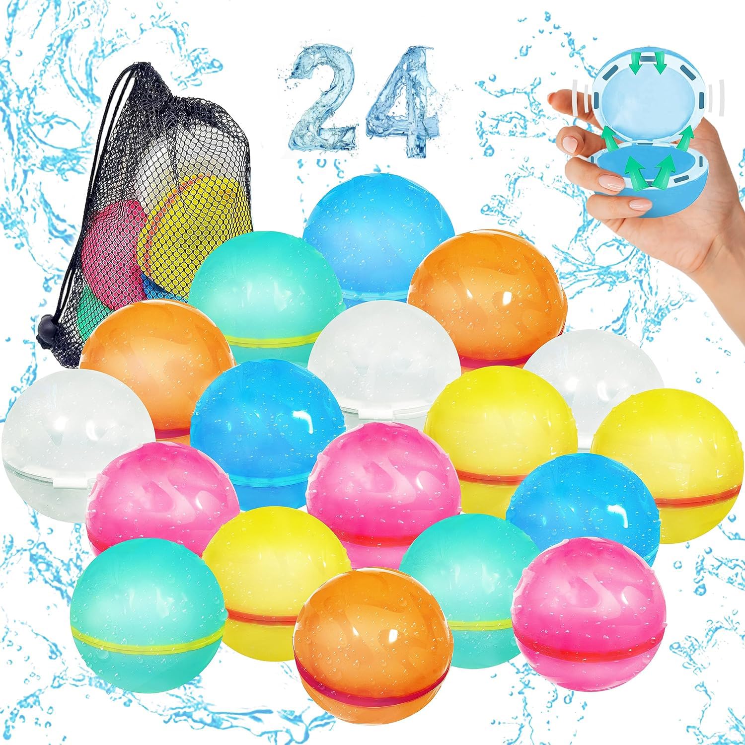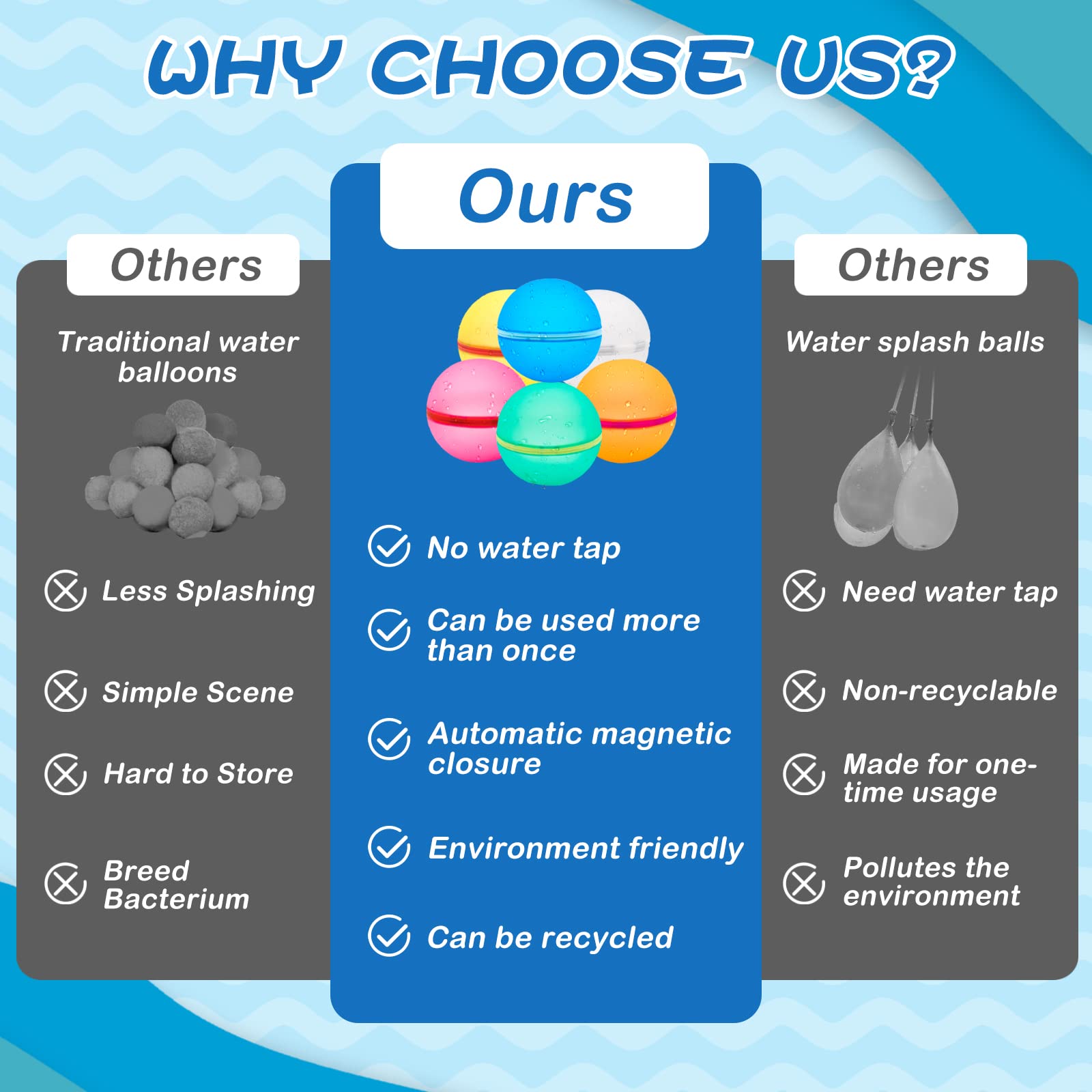 Jouets aquatiques d'été parfaits pour les fêtes en piscine et les activités aquatiques en plein air. 2 X 30 BALLONS BOMBES Á EAU REMPLISSAGE RAPIDE - Ballon-Müller Fabriqués en silicone écologique, ces ballons d'eau sont non toxiques, doux, durables et résistants aux fractures. Ballons d'eau autoscellants uniques: Nos bombes à eau GWAWG sont fabriquées en silicone de haute qualité. Jouets d'eau d'été pour n'importe quelle occasion: les ballons d'eau conviennent aux enfants, aux adolescents et aux adultes, ils sont le meilleur choix pour jouer dans le parc, la cour arrière, la plage ou la piscine. Facile à stocker et à transporter: Ces bombes à eau rechargeables font également de grandes faveurs de fête d'anniversaire pour les enfants. Le sac en maille rend le stockage facile et pratique, parfait. Ballons d'eau réutilisables auto-obturants, remplissage rapide et Boules de pulvérisation magnétiques auto-fermantes GWAWG En tant qu'alternative écologique aux ballons d'eau jetables traditionnels, nos ballons d'eau magnétiques sont fabriqués à partir de matériau de silicone recyclable, assurant des années d'utilisation durable et de plaisir en été. Les parents peuvent être rassurés car il n'y a pas de soucis concernant les réactions allergiques. La conception d'aspiration magnétique permet aux ballons d'eau d'être remplis et scellés en 1 seconde, de sorte que vous pouvez remplir de l'eau à maintes reprises, parfait pour les jeux en famille les jours chauds d'été! Les ballons à eau réutilisables sont fabriqués en silicone sûr, non toxique et inodore. Les parents n'ont pas à se soucier des allergies au latex. Et ces ballons à eau en silicone sont super doux, assurant que les enfants ne se blesseront pas du tout s'ils sont frappés par un ballon à eau Jouet Aquatique écologique Réutilisable Lot De 8 Ballons à Eau Réutilisables, En Silicone Souple, Rechargeables, à Remplissage Rapide, Auto-scellant Magnétique Pour Enfants Et Adultes, Jeux D'été, Boules D'eau | Bombes Ballons Eau Réutilisables Silicone Nos bombes à eau GWAWG sont fabriquées en silicone de haute qualité.