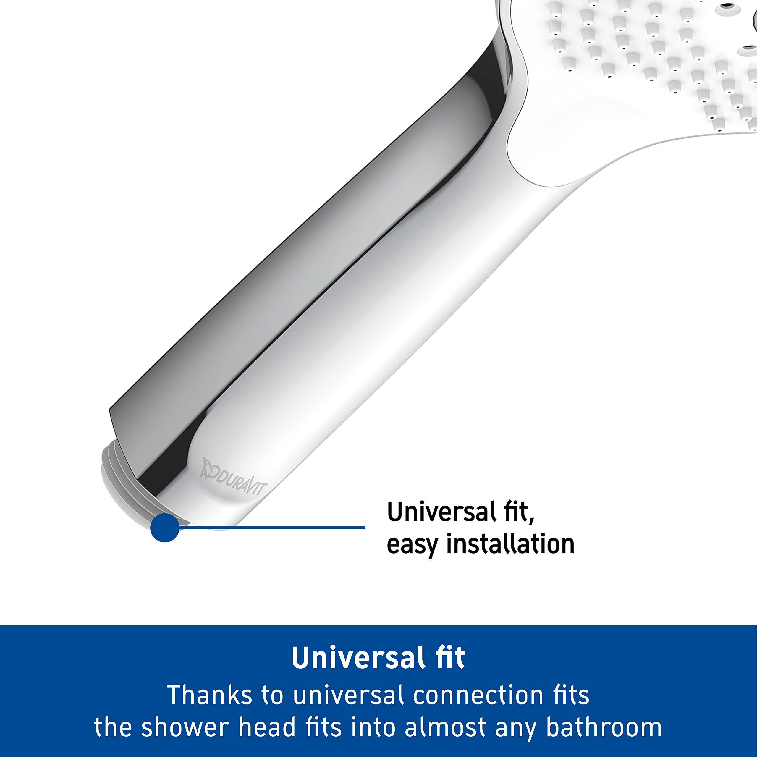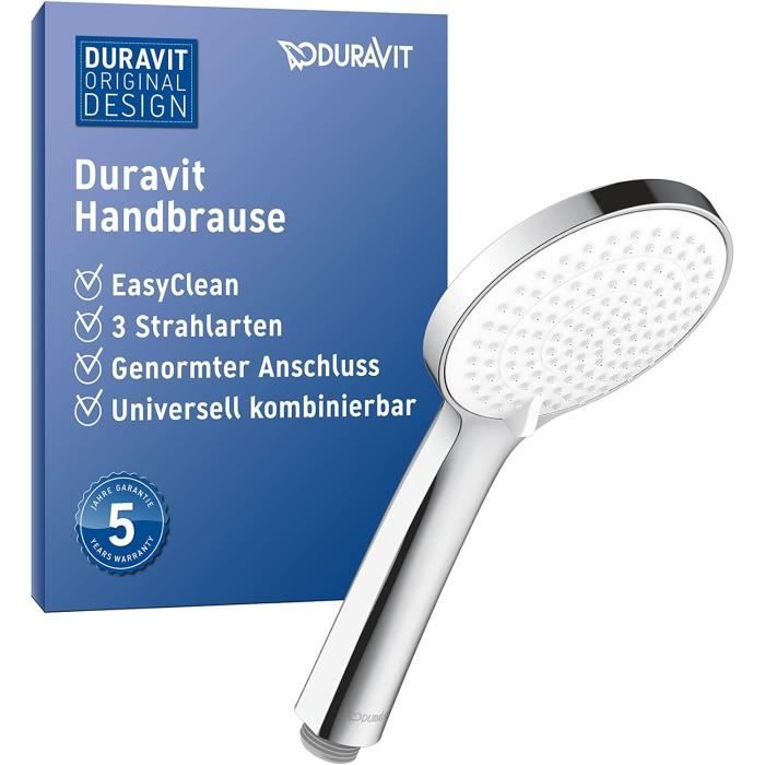 Duravit Universal barre de douche noir mat - UV0600005046 | REUTER 3 types de jets: La douchette à main est équipée de la technologie la plus moderne. 3 Jets Pluie Intense Douce DURAVIT - Douchette à Main, Pommeau De Douche Universel Rond 11cm, 3 Types De Jets - Economie D'eau & Anti-calcaire - Chrome / Blanc | Leroy Merlin Tête De Douche 3 Jets Rain Intense Soft Une douche de plaisir pour tous les besoins D'un design moderne et intemporel et disponibles dans une variété de combinaisons de couleurs pour répondre à différentes préférences, les douches à main et les douches de tête sont parfaitement combinables avec toutes les lignes de robinets Duravit pour s'adapter à tous les budgets. EasyClean: le calcaire et les dépôts de saleté sur les picots en silicone se frottent facilement avec les doigts. 5 ans de garantie fabricant: des contrôles de qualité internes stricts garantissent une qualité élevée et constante des produits et permettent d'offrir une garantie de cinq ans sur chaque pomme de douche. Pomme de douche Duravit - économique en eau, élégante et confortable - coloris au choixAvec un débit de seulement 9 l/min à 3 bars, la pomme de douche Duravit assure une consommation d'eau réduite grâce à la technologie MinusFlow, tout en offrant un confort optimal. Le jet pluie régulier répartit l'eau doucement et largement sur tout le corps.Le nettoyage est simple : grâce à la... Duravit Universal douchette, pommeau de douche, pomme de Grâce à sa surface chromée facile d'entretien et durable, la douchette à main se combine parfaitement avec toutes les lignes de robinetterie Duravit en termes de design. Celle-ci permet de choisir entre les types de jets souhaités - Rain, Intense Rain ou Soft Rain. Duravit Universal pommeau de douche, pomme de douche avec 3 types de jets (Rain, Intense Rain, Soft Rain), Tête de douche ronde (Ø 110 mm), facile à nettoyer, chromé EasyClean: Le calcaire et les dépôts de saleté sur les picots en silicone se frottent facilement avec les doigts.