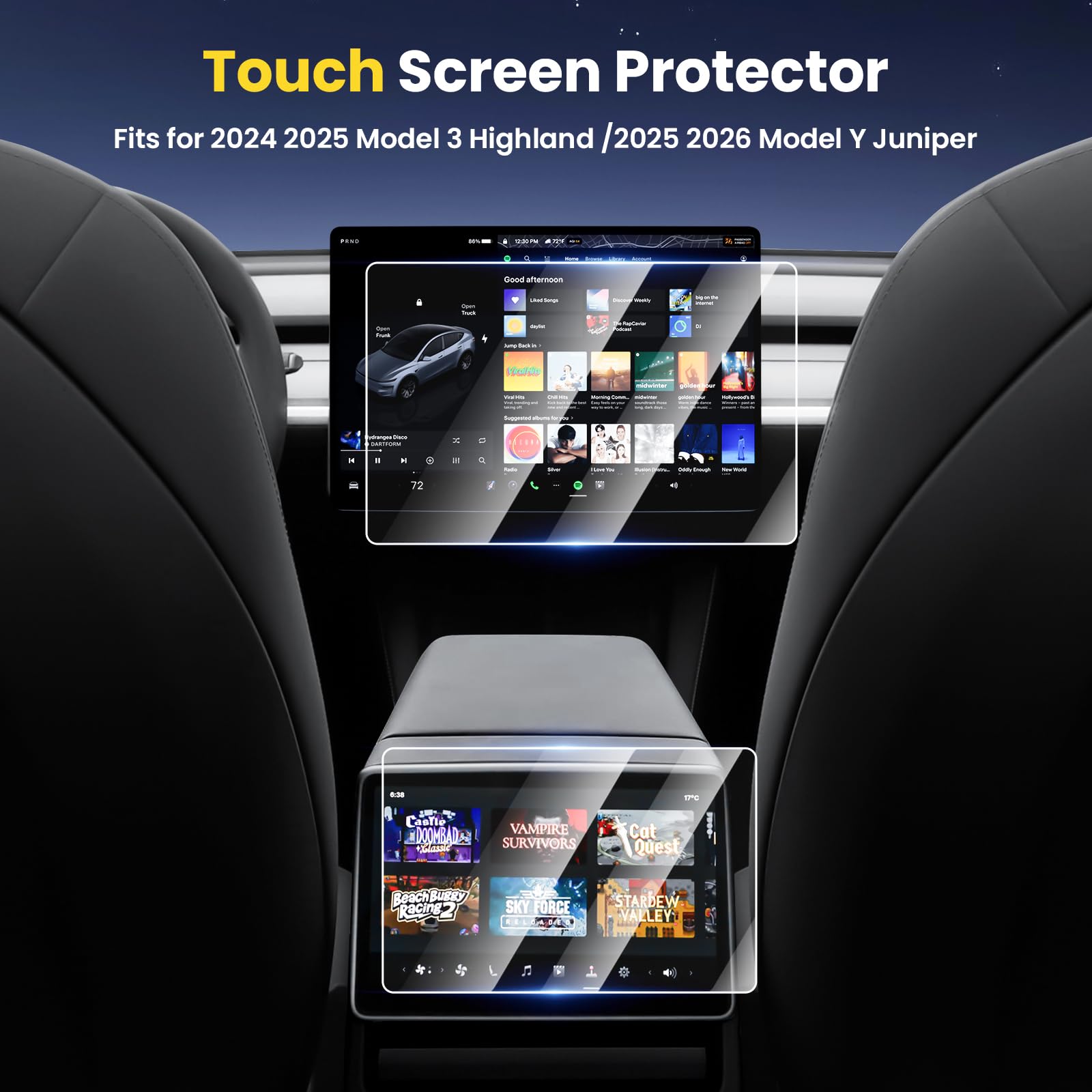 Si vous avez des questions ou des problèmes, veuillez nous contacter. Cela réduit considérablement les reflets et l'éblouissement et augmente considérablement la visibilité, en particulier en plein jour. Contenu de l'emballage : 1 film de protection mat., Aide au montage. La surface mate donne également à l'écran de votre véhicule Model Y un aspect professionnel et élégant. Installation facile : Notre film de protection Model Y est découpé avec précision et permet une installation facile et sans bulles. Achetez des protecteurs d'écran pour Tesla Model 3 & Y | HD clair et anti-traces de doigts Cette durabilité est particulièrement importante dans l'environnement du véhicule, car l'écran est exposé à des dangers potentiels tels que les clés, les montres, la saleté ou d'autres matériaux abrasifs. Il préserve la sensibilité tactile de votre écran sans retard ni perte de réactivité. Découvrez l'application anti-poussière et sans bulles, dites adieu aux défauts gênants et profitez d'un écran cristallin. Ultra fin et réactif : avec seulement 0,25 mm d'épaisseur, le film de protection s'adapte parfaitement à l'écran et préserve la sensibilité originale de l'écran tactile Ecran Tactile SHAOHAO Compatible Avec Tesla Model Y Juniper 2025 2026 15.4" Film De Protection D'écran De Navigation GPS Transparent Anti-rayures 9H Verre Trempé Tesla Model Y Juniper Accessoires Tesla Model 3 Remarque : S'il y a un problème avec le produit, nous offrons un retour ou un remboursement gratuit pour chaque commande. Cela minimise les distractions pendant la conduite et assure une vision claire de l'écran., 2., Protection efficace pour votre écran Model Y : Le film de protection résiste facilement à une utilisation quotidienne et préserve la durée de vie et la qualité visuelle de l'écran en empêchant les rayures, la saleté et les dommages. Compatible avec]2025 2026 Nouveau Tesla Model Y Juniper Performance QHD Écran d'infodivertissement tactile 16 pouces [Remarque En outre, il donne à l'écran de votre véhicule un aspect professionnel et élégant. 【Vision anti-reflet et claire】En plus de réduire les reflets, la surface mate garantit que l'écran ne présente pas d'effets arc-en-ciel lorsque vous portez des lunettes de soleil polarisantes (élimine l'effet moiré). Compatible avec : 2025 2026 Nouveau Tesla Model Y Juniper QHD 16 pouces Infodivertissement Écran tactile [Remarque : non compatible avec 15,4 pouces !, !, !, ] 1., Anti-reflet : La surface mate du film de protection diffuse la lumière dans différentes directions grâce à sa microstructure irrégulière. Installation facile : le film de protection est découpé avec précision et permet une installation facile et sans bulles.