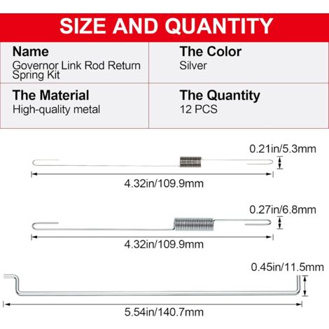 Durabilité durable : la construction de ressorts et de composants de liaison garantit une résistance à l'usure dans diverses conditions opérationnelles pour une performance durable. Kit tout-en-un : le colis contient tous les composants nécessaires, y compris les ressorts de régulateur, les ressorts de retour d'accélérateur, le ressort de retour de câble et la tige de régulateur, des solutions complètes de contrôle de vitesse dans un seul lot. Composants standard OEM : chaque article du kit répond aux spécifications OEM pour une performance fiable et un ajustement précis avec des numéros de pièces tels que 16561 Z4M 010 et 16555 Z4M 000, améliorant l'efficacité globale du moteur. Kit De Liaison à Ressort De Rappel D'accélérateur 12 Pièces, Kit De Liaison A Ressort De Rappel Daccelerateur 12 Pieces Kit De Liaison A Ressort De Liaison De Regulateur De Vitesse Pour Honda Gx140 Gx160 Gx200 Gx210 168f 170f 86826188 Ressort d'aélérateur Honda GX 110, GX 120, GX 160, GX 200 (grand Fabriqué à partir de matériaux durables, ce kit améliore la fiabilité et les performances, garantissant que votre réponse de l'accélérateur reste cohérente même... ressort pour pédale d'accélérateur