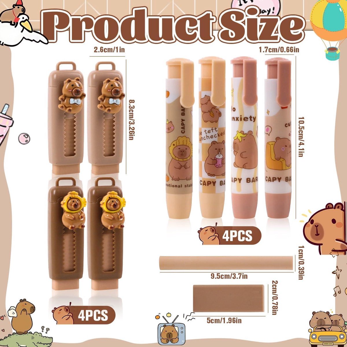 La longueur de la gomme peut être ajustée selon les besoins, ce qui permet non seulement un contrôle d'effacement plus délicat, mais aide également à protéger la partie gomme de la pollution ou des dommages externes Matériaux de haute qualité : cette gomme est fabriquée en PVC de haute qualité et respectueux de l'environnement, qui efface facilement les marques de crayon, laisse peu de résidus et est sans danger pour les enfants Cadeau parfait : la gomme rétractable a un design innovant et est très adaptée pour une utilisation dans le dessin, la peinture, l'école, la maison et le bureau. 20 Pièces Gommes Pour Crayon Enfant Dessin Animé on Détails de l'emballage : le produit comprend un total de 20 gommes rétractables de dessin animé, telles que citrouille, fraise, orange ; il existe également une variété de styles de dessins animés parmi lesquels choisir Vous souhaitez que vous ou votre enfant découvre l'univers du dessin sans vous ruiner ? vous propose une gamme très large de gommes aux meilleurs prix Gomme Push-pull Dessin Animé Ukisisi 4 Gommes Rétractables En Forme, Fournitures Kawaii,Gomme Rétractable ,Caoutchouc De Papeterie Kawaii,Gomme En Caoutchouc Dessin Animé, Fournitures Scolaires Mignonnes Gomme Dessin Description Ce sont des gommes de dessin animé, faciles à essuyer les marques de crayon et peuvent utilisées pendant longtemps