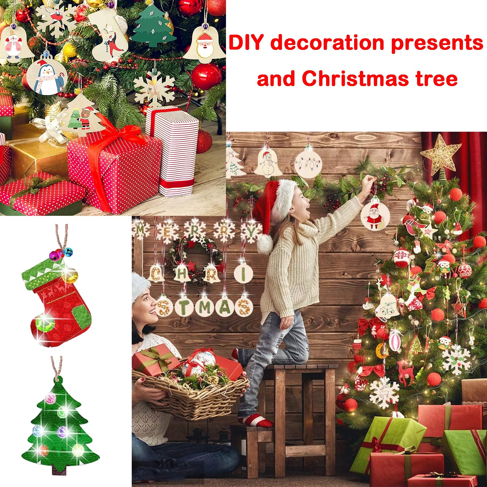 Kit Décoration Noël DIY - 360 Pièces Uniques en Bois Puce | La déco de Noël Puce En Bois DIY Decoration Noel Bois Artisanat Deco, Sapin De Noel Puce De Loisir Créatif Cadeau pour partager la joie de Noël ensemble et apporter une grande atmosphère au jour de Noël. 🎄【Ensemble de Suspensions de Noël en Bois】Vous recevrez 360 pièces de décorations de Noël, dont 36 suspensions de Noël (12 styles, 3 de chaque), 36 cloches, 36 Yeux, 36 Cordes, 12 stylos aquarelle, 202 Strass, 2 autocollants de tatouage de Noël (2 styles, avec instructions au dos), une quantité suffisante pour vous permettre de décorer. 🎄【Christmas DIY Craft Activity】C'est parfait comme cadeau pour les enfants, ils peuvent créer comme ils le souhaitent, peindre des motifs intéressants ou écrire des bons vœux et des prières, c'est aussi un bon bricolage de Noël parents-enfants qui apporte beaucoup de plaisir aux enfants. Envie d'une décoration de Noël en bois unique? Découvrez 33 idées DIY faciles pour créer des ornements et cadeaux chaleureux qui sublimeront votre intérieur 🎄【Parfait Cadeau de Noël】C'est un excellent cadeau de Noël. Création artisanale de sapins de noël en bois : techniques de découpe, assemblage modulaire, finitions écologiques, styles variés et intégration de systèmes lumineux pour un résultat unique Vous pouvez donner des pendentifs artistiques en bois non finis ou finis à votre famille, vos amis, vos collègues ou vos voisins, etc. 🎄【Matériau de Qualité】Le produit est fabriqué en bois naturel de haute qualité avec une surface lisse et sans bavures et est durable, sûr et facile à utiliser.