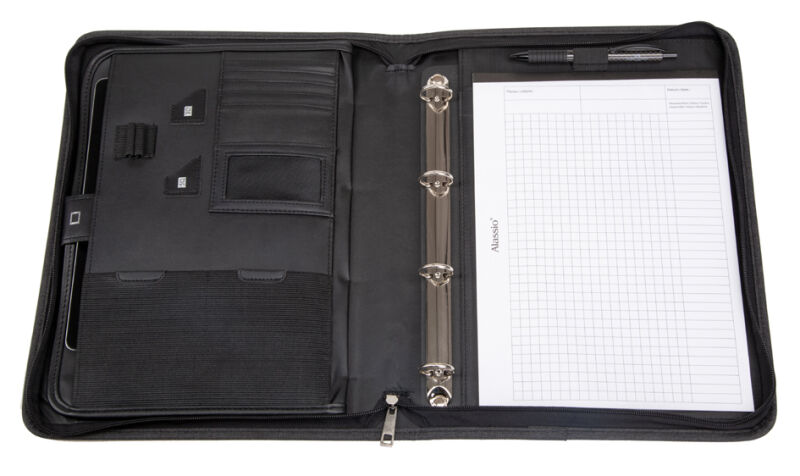 bloc-notes, calculatrice, compartiment coulissant A5, compartiment pour cartes de visite, compartiment transparent Produit de qualité supérieure de la marque Alassio En cuir synthétique noir Porte Documents Professionnel Noir Alassio Bormio 43004-1 Porte-Documents En Simili Cuir Avec Calculatrice De Poche Noir A5 Organiseur Bureau Bloc Notes Intégré Ce porte-documents A5 de la marque Alassio est un produit de qualité supérieure en cuir synthétique noir. Il est équipé d'un bloc-notes, d'une calculatrice, d'un compartiment coulissant A5, de compartiments pour cartes de visite et d'une poche transparente Le porte-documents BORMIO DIN A5 de Alassio en cuir synthétique noir comprend un bloc-notes, un compartiment DIN A5, un compartiment pour cartes de visite, un passant pour stylo et un compartiment transparent Calculatrice de Poche Flora - Legami Legami chez Rougier & Plé