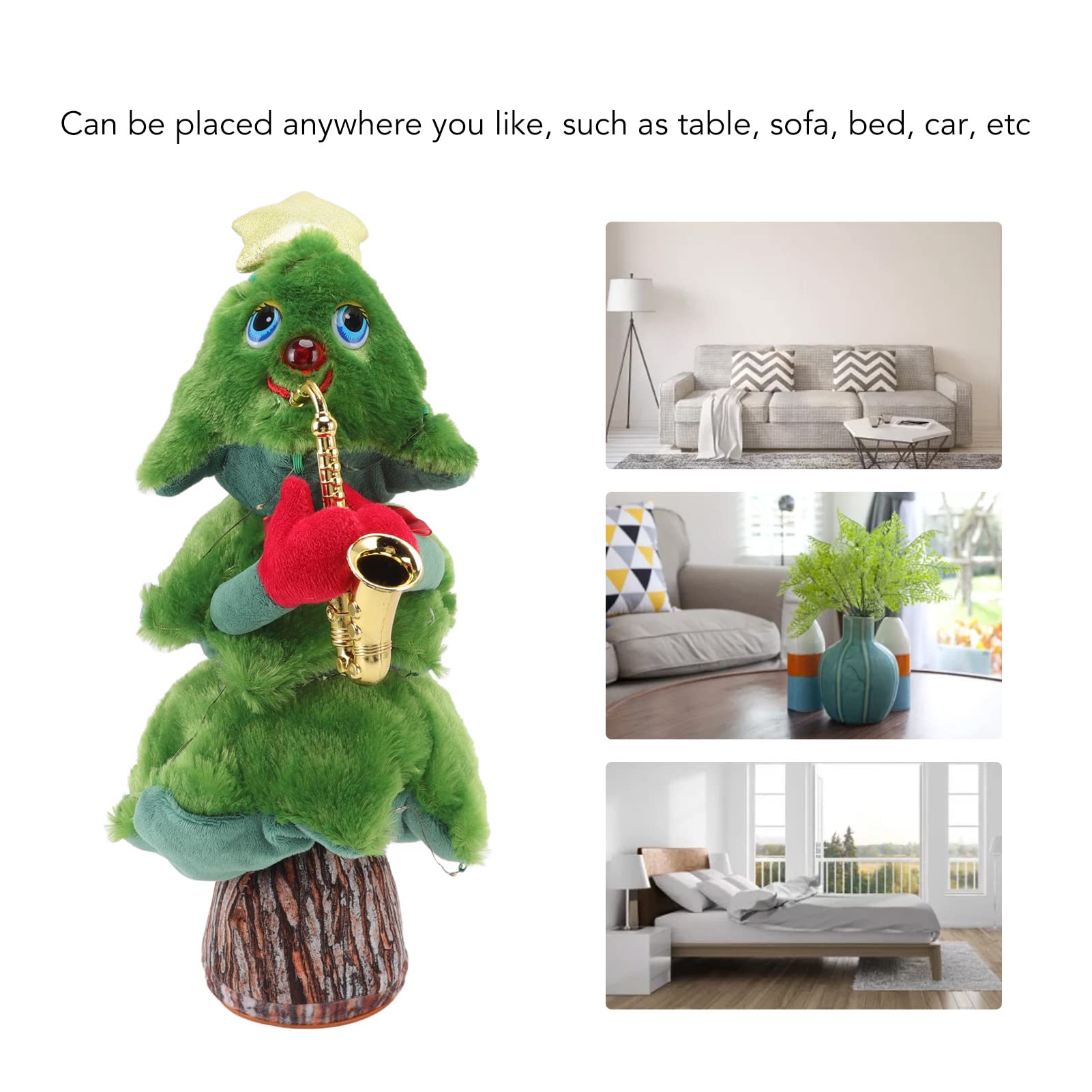 En raison de différentes mesures manuelles, veuillez permettre une différence de taille de 1 à 2 cm. Caractéristiques Matériau: Plux + composants électroniques Doté d'une fonction de chant captivante, cet arbre de Noël engage les utilisateurs de âges, le rendant idéal pour les rassemblements familiaux ou pour une utilisation individuelle. Il favorise une atmosphère animée lors des réunions de famille et crée une atmosphère festive attrayante et inoubliable grâce à son élan électrique fluide. Cet ornement de bureau constitue un ajout charmant à votre décoration de Noël, tout en servant également de remplissage de chaussette pour les femmes, les hommes, les , ainsi que les garçons et les filles. Jouet de Noël Qui Danse et Chante, Peluche de Noël avec Musique, Ornements de Noël Jouet en Peluche Poupée Musicale de Noël Électronique Peluche Facile à utiliser : cet arbre de Noël musical offre un plaisir interactif grâce à des étapes de fonctionnement simplifiées et crée des expériences inoubliables pour les familles lors des fêtes de Noël ou des rassemblements festifs tout au long de la période des fêtes. Fonction de danse dynamique : cet arbre de Noël dansant bouge en rythme avec la musique et offre une façon amusante d'enrichir les célébrations de Noël. Point fort du mouvement festif : doté d'un mécanisme de balançoire électrique créatif, ce sapin de Noël dansant divertit les invités en se déplaçant... Sapin De Noël Parlant Sapin De Noël En Peluche Avec Lumières De Vue - Jouet éducatif Amusant Pour Les Enfants Arbre De Noël - Maison Figurine Peluche Festive Son design compact s'intègre parfaitement sur n'importe quelle de table, créant une atmosphère chaleureuse et accueillante pendant la période des fêtes. Batteries: 3 batteries AA (non incluses) Descriptif technique ; Sapin de Noël,Jouet en peluche électronique danse arbre de noël, ornements de chant et de danse, jouet électrique - Type Saxophone L'arbre de Noël chantant est un jouet interactif électrique conçu pour apporter de la festive à votre maison ou studio. Amusement festif pour les petits espaces : cet arbre de Noël chantant et dansant est spécialement conçu pour des tailles compactes afin de permettre un positionnement sans effort dans des espaces limités. Illumination Festive L'arbre de Noël chantant émet une lumière chaude et douce une fois allumé, enrichissant l'ambiance des fêtes et servant de point focal captivant dans tout espace. Ambiance douce : lorsqu'il est allumé, le sapin de Noël chantant crée une atmosphère accueillante qui souligne l'ambiance festive et sert de pièce maîtresse thématique dans les salons ou les espaces de Noël.
