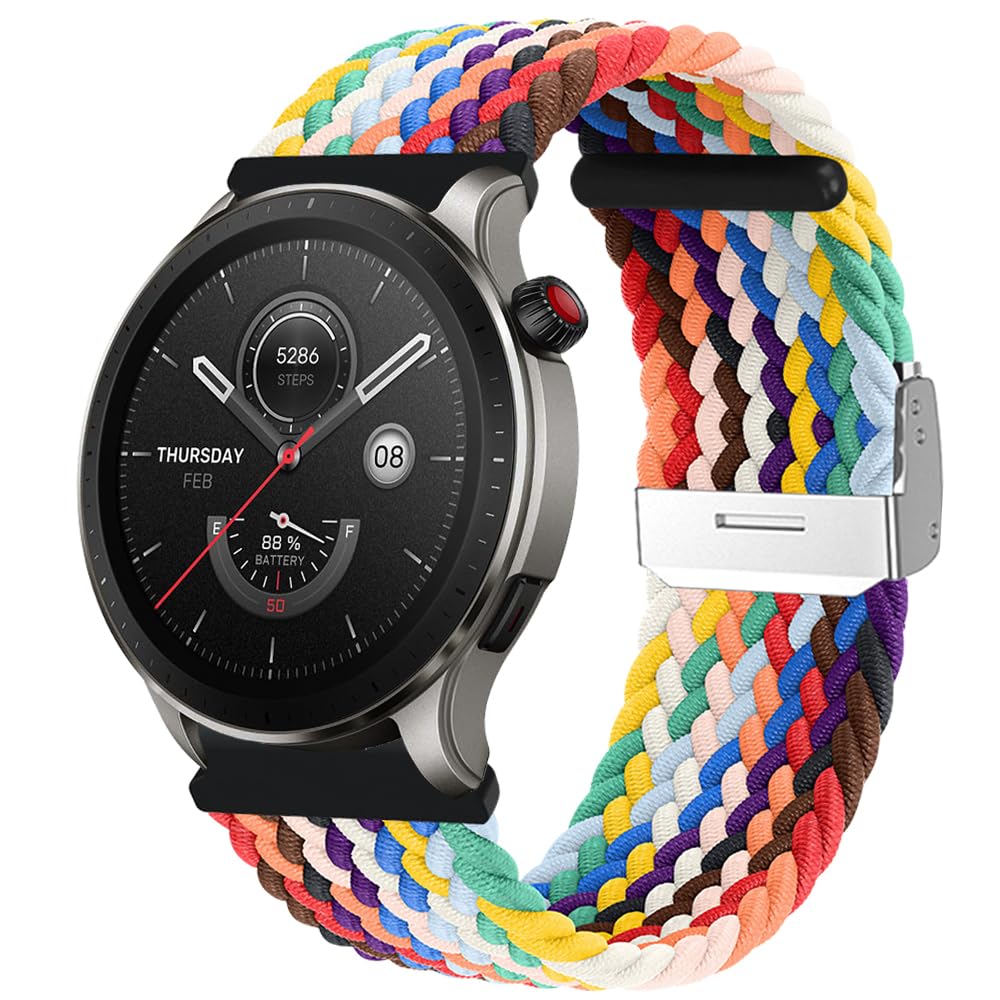 MiRowy 22mm Bracelet Pour Amazfit T-Rex 3 Pro 48mm/Balance 2/Balance/Bip 6/Bip 5/Bip 5 Unity, Nylon élastique Watch Band Pour Amazfit GTR 4/GTR 3/GTR 3 Pro /GTR 3, Iridescent