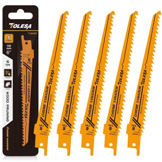 Aucun problème de compatibilité Lame de scie sabre - bimétal - longueur de coupe 150 à 300 mm - Bosch Faits saillants · Matériau. Acier au chrome-vanadium · Marque. EZUVITA · Couleur. Vert · Nombre de dents. 5 · Style. Pruning-6pcs · UPC. 647581750247 Excellent dans les applications en bois humide, ne convient pas pour le bois contenant des clous 【Utilisations de coupe polyvalentes】Conçu pour l'élagage et l'aménagement paysager à haute efficacité, idéal pour tailler les branches, couper le bois humide ou trancher les tuyaux en plastique. Avec sa denture trempée, cette lame assure une performance exceptionnelle sur divers matériaux. Idéale pour le bois vert et le bois de chauffage. Parfaite pour... Tige universelle : s'adapte à toutes les grandes marques de scie alternative, y compris DeWalt, Bosch, Makita, Milwaukee, Ryobi, etc. Étui de rangement portable : livré avec un étui en plastique durable avec un trou de suspension sur le dessus pour un rangement mural pratique, un transport facile ou un rangement soigné dans votre boîte à outils Lames Pour Bois Humide Lames De Scie Sabre 10Piece Pour Bois Et Métal Avec Boîte De Rangement Lame Coupe Bois épais