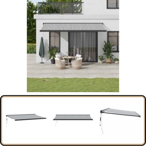 Dimensions : 4,5 x 3 m (L x l) EN STOCK : Auvent rétractable | store banne anthracite 4,5x3 m tissu et aluminium pas cher - Retrait & Livraison - Paiement 4X disponible Matériau durable : le cadre de l'auvent est en aluminium enduit de poudre, ce qui est robuste et durable. 【Auvent rétractable :】 l'auvent de porte est rétractable pour répondre à vos différents besoins. Il convient à de nombreux endroits, tels que les balcons, les patios, les cours, les restaurants, les cafés, les magasins, etc. 【Conception murale :】 l'auvent de terrasse peut être facilement monté sur le mur à l'aide des supports muraux inclus et n'occupera pas d'espace au sol. Auvent rétractable : l'auvent de porte est rétractable pour répondre à vos différents besoins. Ventes Flash Noël : vidaXL Auvent automatique store capteur de vent LED 4x3m Bleu et blanc pas cher Il convient à de nombreux endroits, tels que les balcons, les patios, les cours, les restaurants, les cafés, les magasins, etc., Couleur : anthracite Le tissu avec traitement de surface PU est résistant aux UV. Nombreuses applications : l'auvent rétractable présente un design simple et élégant qui s'intégrera parfaitement à votre maison ou dans un cadre commercial. Profitez d'une boisson aîche, d'une délicieuse gâterie ou d'une conversation agréable avec des amis sur votre terrasse tout en vous détendant sous cet auvent rétractable ! Matériau durable : le cadre du store de terrasse est fabriqué en aluminium enduit de poudre, ce qui est robuste et durable. Le tissu avec traitement de surface PU est résistant aux UV. Il évitera à votre famille... Store Terrasse Murale VidaXL Auvent Rétractable Anthracite Et Blanc 4x3 M Tissu Et Auvent Rétractable Sans Perçage Sol Conception murale : l'auvent de terrasse peut être facilement monté sur le mur à l'aide des supports muraux inclus et n'occupera pas d'espace au sol.