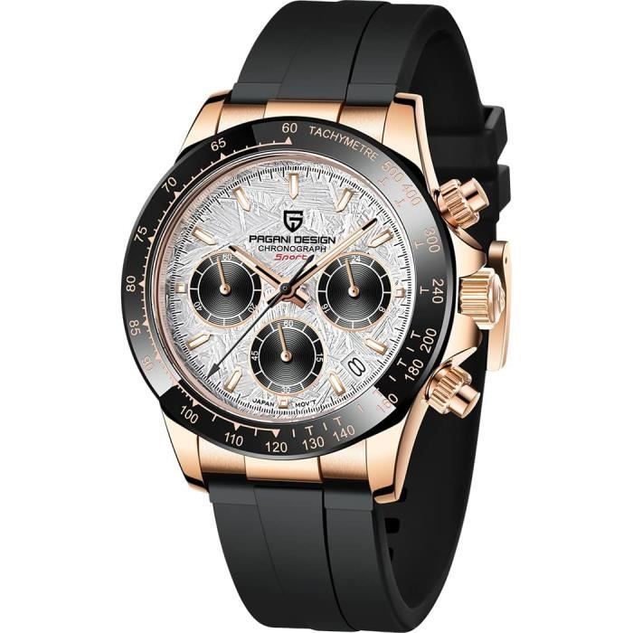 Pagani Design Montre Homme de Luxe Automatique Étanche 100M Mécanique Montre Style Classique Luminescente Pagani Design Montre Homme, Montre à Quartz Mouvement Japonais, Bracelet Caoutchouc éTanche 100m, Miroir Saphir, Calendrier Lumineux Montre Précise Cadeau Homme En cas de problème, notre équipe est disponible pour vous aider. La Montres Pagani Design : L'alliance parfaite entre l'horlogerie nippone et le design contemporain Conçue pour l'homme moderne exigeant, cette montre quartz pour homme incarne l'excellence technique avec son mouvement japonais certifié, offrant une précision à ±15 secondes/mois. Pourquoi choisir cette montre homme étanche ? ✓ Technologie anti-choc : Cadran protégé par un verre saphir trempé ✓ Polyvalence stylistique : Passez du bureau aux sports nautiques ✓ Détails premium : Boucle déployante avec sécurité plongeuse et index Super-LumiNova ✓ Écologie : Certifiée RoHS sans métaux lourds Spécifications techniques de la montre Pagani : Epaisseur du boîtier : 7MM/0., 7CM/0., 27IN Diamètre du cadran:37MM/3., 7CM/1., 46IN Poids :109G/0., 241B Périmètre maximum :172MM/17., 2CM/6., 77IN Mouvement :JAPAN TMI VH31 Largeur du bracelet :24., 5MM/2., 45CM/0., 96IN Matériau du bracelet : Acier inoxydable Matériau de la fenêtre du cadran :Verre saphir synthétique Idéale pour : Cadeaux de promotion/Fête des Pères/Anniversaire. Conçue pour l'homme moderne exigeant, cette montre quartz pour homme incarne l'excellence technique avec son mouvement japonais certifié, offrant une précision à ±15 secondes/mois ✌Rayon lumineux vert ultra-brillant : l'aiguille et les graduations sont recouvertes d'un matériau luminescent (vert). Elle est confortable à porter et le verre saphir n'a aucune rayure malgré le fait que je ne fasse pas particulièrement attention. Sur la partie très polie du... 🎁 Garantie et Service Exceptionnel : PAGANI DESIGN propose un service client de premier ordre, avec des retours sans justification pendant 30 jours et une garantie d'un an. Le boîtier poli miroir 37mm épouse parfaitement les poignets de 16 à 19cm.