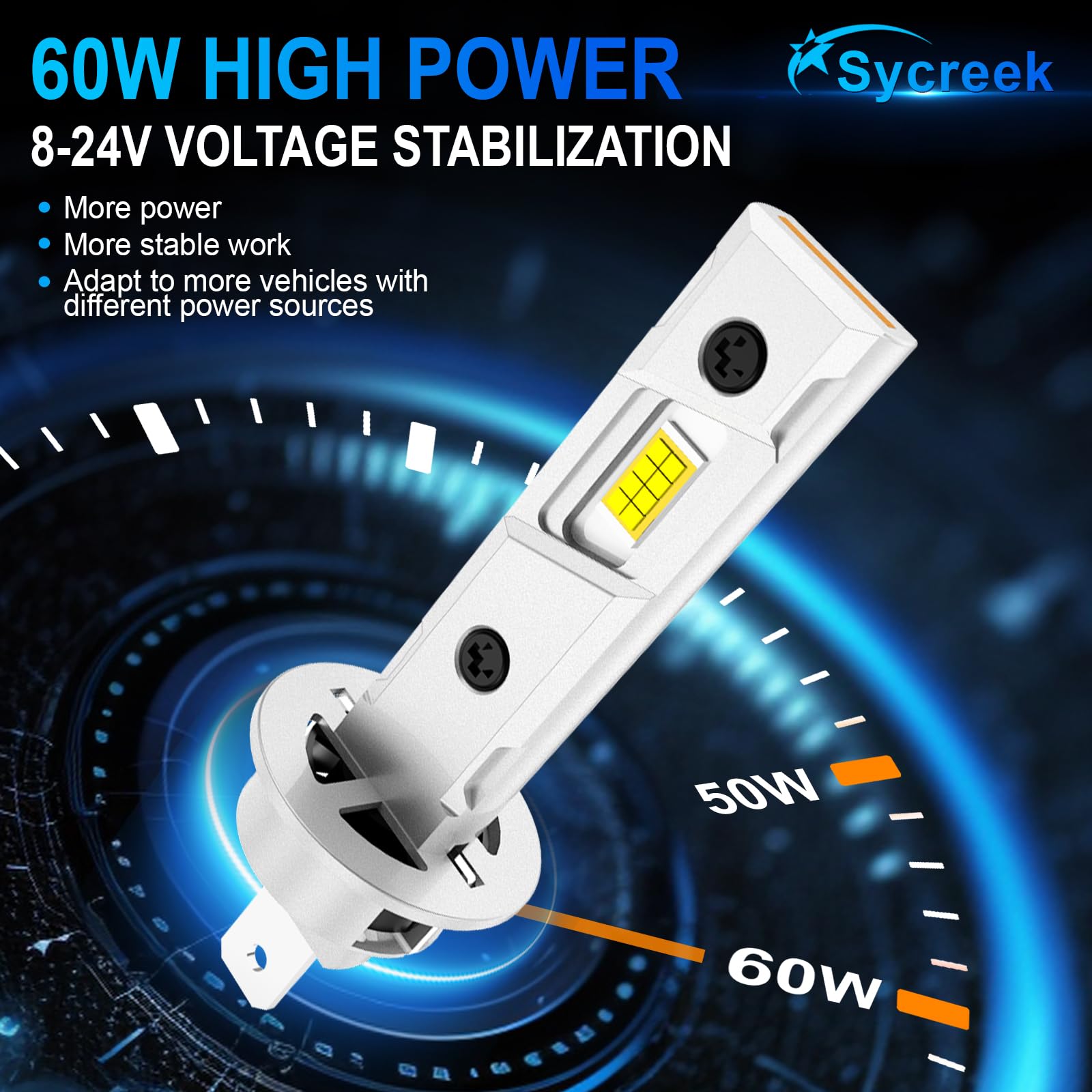 Les meilleures ampoules H1 en 2025 ! Avis d'un Mécano Ampoule Phare H1 LED Ampoule H7 Led 2023 Améliorée Phare Pour Voiture Et Moto, CSP 100W 22000LM 600% Luminosité 6500K Ampoule H1 100w Nous fournirons des réponses et des solutions professionnelles à tout problème de qualité du produit ou à toute question en cours d'utilisation Ampoules De Phares Améliorées Sycreek H1 Led 2025, 16 Pièces Led, 120 W 30 000 Lm 600 % Super Luminosité 6 500 K Blanc, Compatible 9-24 V 【Conception Large Tension & Compatibilité Accrue】Sycreek ampoule h1 est conception à large tension de 24V pour répondre aux besoins d'éclairage de tous les types de gros camions et de véhicules lourds. Puissance Lumineuse Exceptionnelle : Grâce à des puces améliorées, ces ampoules led h1 offrent une sortie lumineuse de 22 000 lumens avec une lumière blanche pure de 6000K blanc, éclairant votre route comme jamais auparavant Largement compatible avec tous les types de véhicules, facile à mettre à niveau le système de lampe, améliorer l'efficacité de la conduite et la sécurité Ce faisceau focalisé prévient les collisions avec les véhicules venant en sens inverse et améliore la sécurité routière. 28000 lm : Puce 2025 améliorée avec 16 perles, avec une distance d'irradiation d'au moins 1000 °F et un blanc froid de 6 500 k, pour une meilleure visibilité et une conduite de nuit plus sûre 【Dual Fins Integrees & Superior Heat Dissipation】Sycreek LED h1 adopte une nouvelle conception améliorée de dissipation de la chaleur à double ailette, qui améliore considérablement les performances de dissipation de la chaleur. 【16 CSP LED & Luminosité Brillante】 Ampoule H1 LED est dotée de 16 mèches haute luminosité intégrées pour garantir des performances optiques supérieures et une répartition homogène du faisceau.