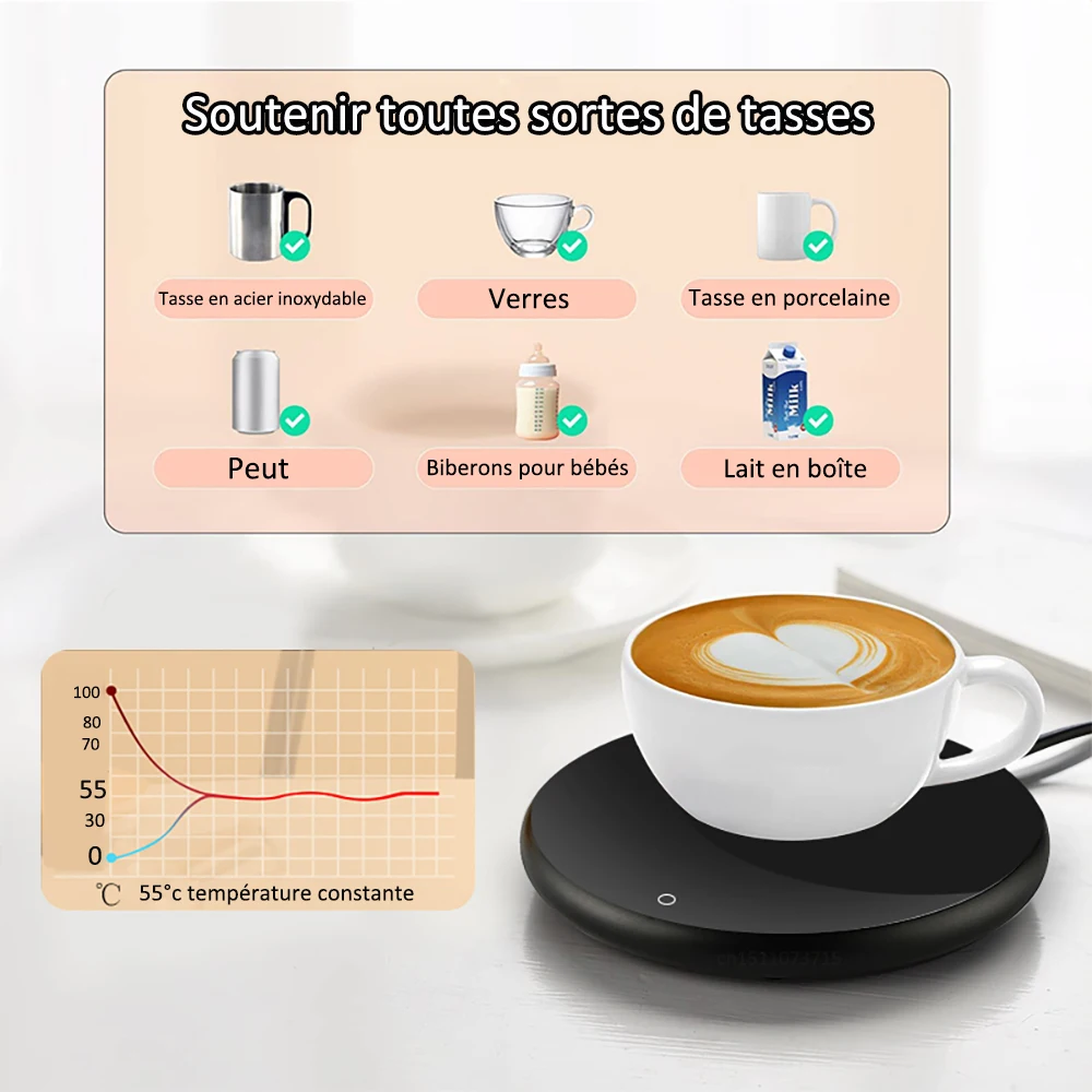 Puissance de sortie : 13 WListe de colisage:1 * chauffe-tasse à café Largement utilisé pour garder les boissons au chaud. Achetez Chauffe-café Électrique, Chauffe-Tasse Intelligent pour Bureau, Chauffe-Tasse avec 2 Réglages de Température, Plaque Chauffante, Chauffe-Boisson Électrique, Chauffe-Boisson pour Cacao, Thé, Lait à Canada Ensemble chauffe-café et tasse, tasse à café électrique avec arrêt automatique de 10 heures, * pile, chauffe-tasse intelligent alimenté par USB, tasse à *-chauffante pour bureau Ajustez facilement la température : notre chauffe-tasse à café offre deux réglages de température réglables pour votre expérience de consommation idéale. Chauffe-tasse de Bureau : Chauffage Rapide Garde le Café Chaud Toute la Journée Adapté aux Beau cadeau : idéal pour garder vos boissons au chaud, ce qui en fait le meilleur cadeau pour apporter de la chaleur à vos proches et amis - un bon choix pour Thanksgiving, Noël, les anniversaires et la Saint-Valentin Largement applicable : parfait pour votre bureau, économisant de l'espace et maintenant l'ordre, tout en ajoutant du style et de la fonctionnalité ; parfait pour les anniversaires, les vacances et les occasions spéciales Chauffe-tasses pour Bureau Chauffe-Tasse Arrêt Automatique Chauffe-Tasse pour Café avec 2 Réglages de Température (113°F/131°F), Chauffe-Tasses Chauffant pour Thé, 9 Réglages de Minuterie Chauffe-Boissons Électrique (Rose Matériel: PP Taille du produit: environ 10,7x10,7 cm/4,21x4,21 poucesTension d'entrée : 5 V/2 A. Choisissez parmi deux réglages de température réglables, idéal pour une utilisation à la maison, en studio ou en extérieur. Un cadeau parfait pour les amateurs de café et de thé.