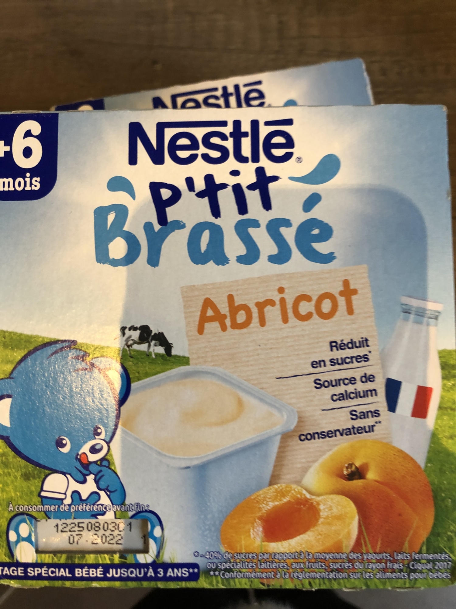 Promo P'tit Brassé Bio Nestlé chez Carrefour P'tit Brassé BIO Banane Mangue Nestlé - P'tit Brassé Dessert Lacté Banane Mangue Céréales Sans Sucre Ajouté Bol Bébé Dès 10 Mois Laitage Bébé Nestlé Bio Mode d'emploi Se conserve à température ambiante (5-25°C). Description du produit P'TIT BRASSE MINI BIO Sans Sucres Ajoutés*, le laitage BIO qui a du bon conçu exprès pour bébé**, sous un format adapté au début de la diversification***. Pratique, il s'emporte partout grâce à notre procédé de fabrication spécifique qui permet une conservation hors du frigo. Promo P'tit Brassé Fraise Banane "nestlé" 6 Mois chez Monoprix *Contient des sucres naturellement présents. Détails du produit P'tit Brassé Banane Mangue Céréales est l'en-cas idéal pour offrir à votre bébé* un petit déjeuner ou un goûter équilibré et savoureux. Ce délicieux mélange combine subtilement les goûts de la banane et de la mangue associés à du lait et des céréales ***Fiez-vous à l'appétit de votre bébé. Produit à Arches dans les Vosges avec du lait français.