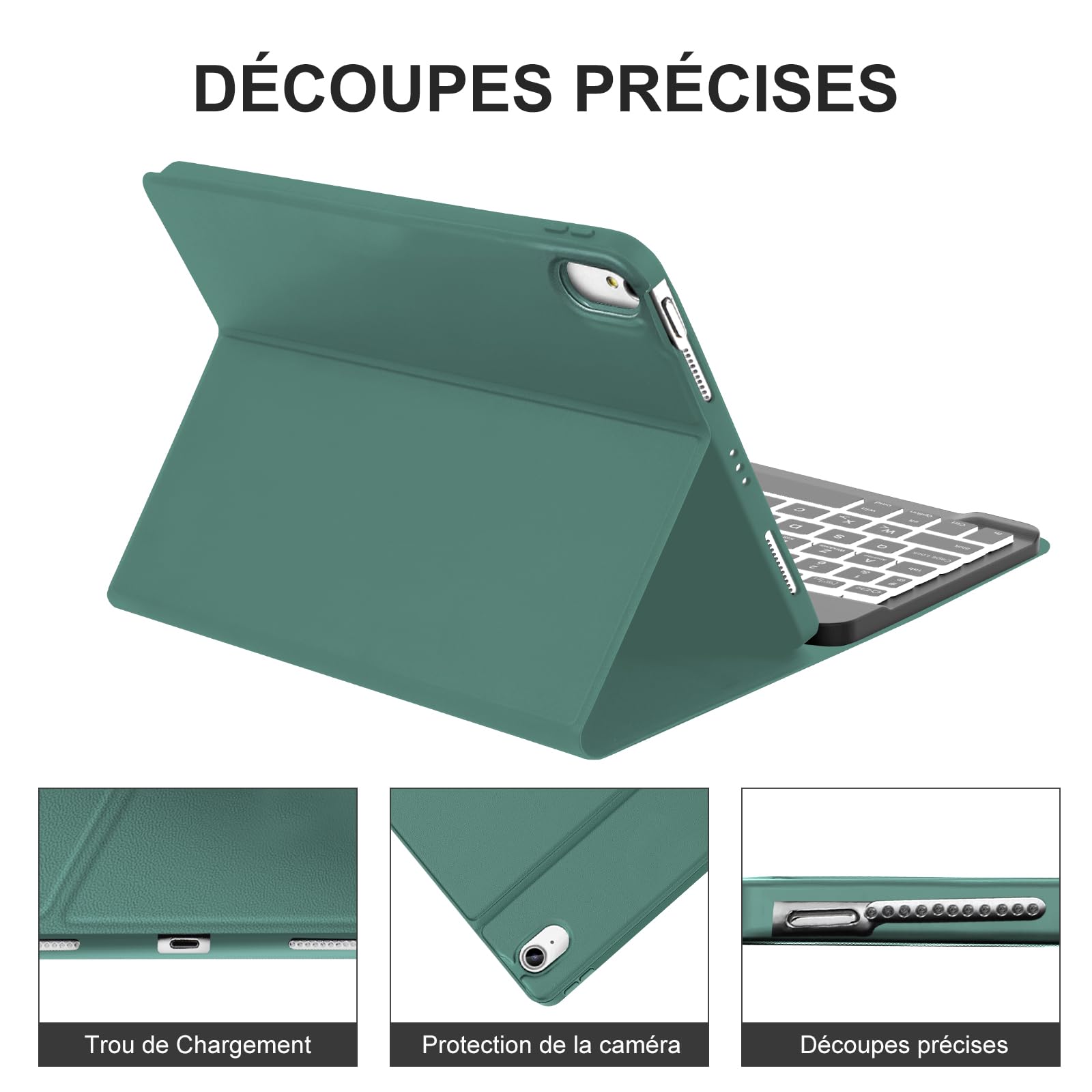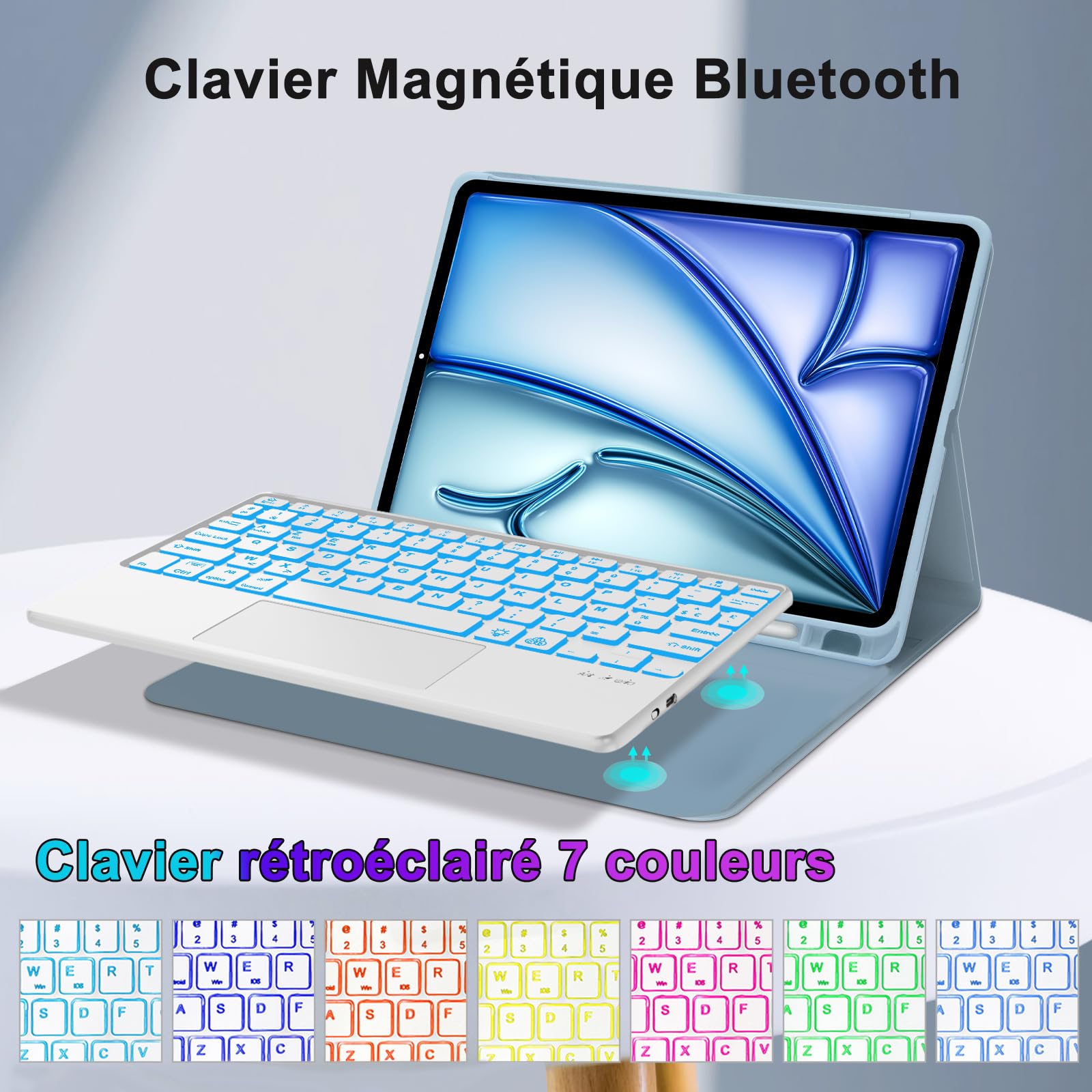 Clavier Ipad JADEMALL Coque Clavier Avec Trackpad Pour IPad Air 11 Coque Ipad 11 Clavier JADEMALL Coque Clavier IPad Air 11 Pouces M3 2025, AZERTY Français Clavier Rétro-éclairé Magnétique Détachable Bluetooth Avec Fente Pour Stylo Pour IPad Air M3/M2 11 Pouces 2025/2024, Vert L'étui en cuir PU durable présente une conception de refroidissement en nid d'abeille pour empêcher l' iPad Air 11 de surchauffer. Coque Clavier avec Trackpad pour iPad Air 11 Pouces M3 2025/M2 2024, AZERTY Français Clavier Bluetooth Détachable avec Pavé Tactile pour iPad Air 11 M2/M3 2024/2025, Noir iPad Air 11 Clavier avec Pavé Tactile: Répond rapidement au clavier du pavé tactile, qui peut contrôler la tablette par une variété de gestes, vous permettant de naviguer efficacement sur le Web. Naviguez sur votre iPad Air 11/iPad Air 5/4 d'une toute nouvelle manière avec un pavé tactile multi-touch, un défilement, un balayage et bien plus encore. AZERTY Clavier iPad Air 11 2025 Angle de Vision Réglable: Cette coque clavier pour iPad Air 11 pouces M3/M2 2025 dispose de trois rainures intégrées pour vous offrir un angle de vue confortable, vous permettant d'ajuster l'angle de la tablette à votre goût, parfait pour écrire et regarder des vidéos. Étui avec clavier amovible pour iPad Air 11 (M3/M2, 2025/2024)/Air 5 /Air 4/Pro 11 (4/3/2/1 Gen) - Pavé tactile intelligent, Rétroéclairage 7 couleurs, ançais AZERTY, Réveil/veille automatique Protégez Parfaitement pour iPad Air 11: Fabriquée en matériau TPU souple, elle offre une protection maximale pour votre iPad Air 11 et évite les rayures sur les bords de la tablette. Clavier avec Trackpad pour iPad Air 11: La coque clavier avec touchpad est compatible avec l'iPad Air 11 (M3/M2) 2025/2024 (A2902/ A2903/ A2904/ A3266/ A3267/ A3270).