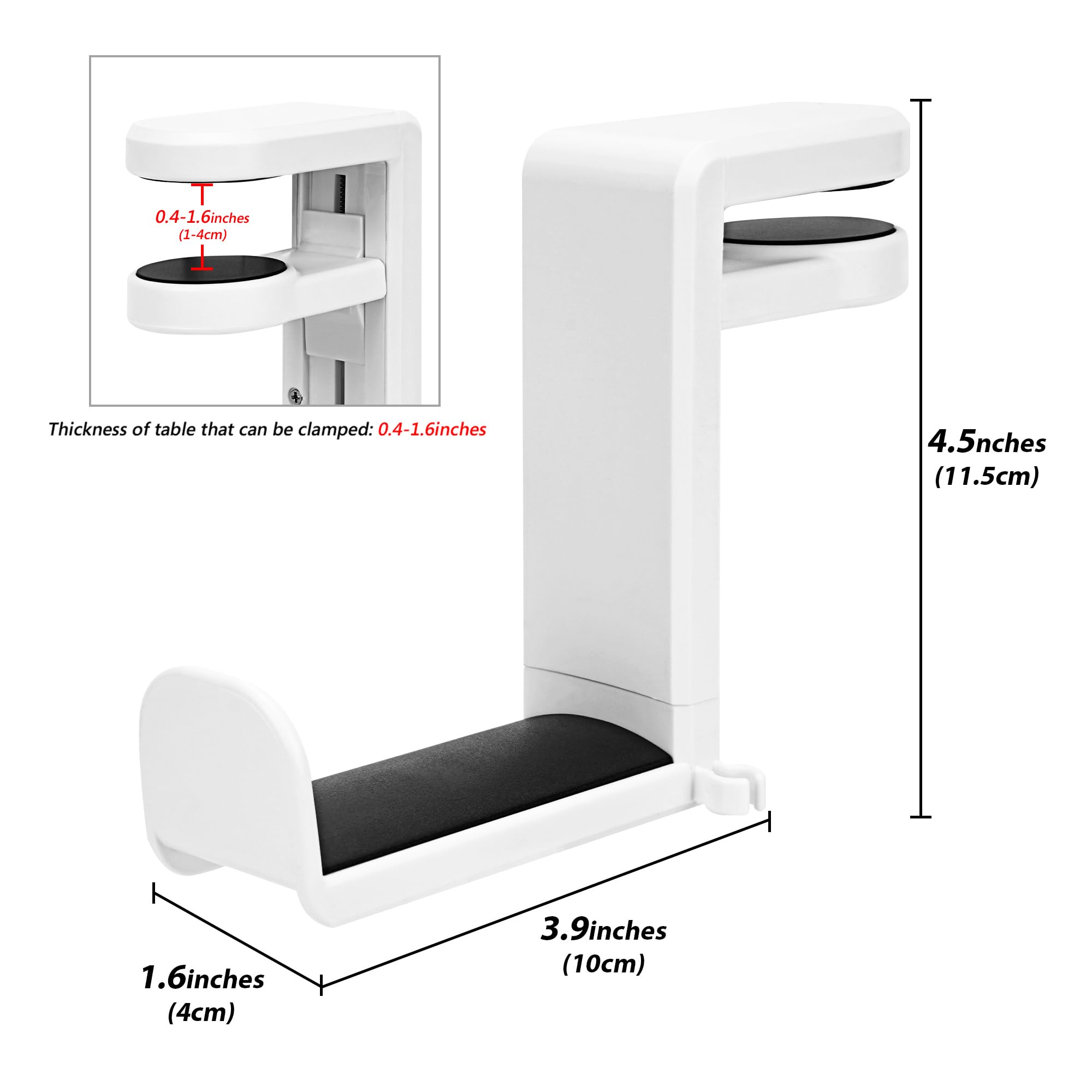 Caractéristiques du produit : - Il peut être installé sur le côté de la table pour une installation simple. GEEKRIA Support 3 en 1 pour casque et manette de jeu PC, support de casque avec rotation à 360° réglable, compatible avec Bose, Sony, AKG, JBL, Sennheiser, B&O (blanc - Le clip de câble maintient le câble de votre casque en place, ce qui peut bien organiser le câble du casque. Fabriqué avec des matériaux de haute qualité, compatible avec de nombreux types de casques de jeu sur le marché et diverses manettes de jeu. Compatible avec Bose, Sony, AKG, JBL, Sennheiser, Beyerdynamic, Audio-Technica, B&O, Beats, PS5/PS4, Xbox One, 360, Xbox Series X, Switch Pro, manette de jeu Steam Controller. Support Casque Gamer Geekria Support Mural Pour Casque De Jeu, Compatible Avec Bose, Sony Support Bureau Rotatif 360 Casque compatible : - Compatible avec le support Bose QuietComfort Ultra, QC35, QC45, QC 35II, QC 25, AE 2., - Compatible avec Sony ULT WEAR, WH-1000XM5, WH-1000XM4, WH-1000XM3, WH-1000XM, MDR-10RBT. Le support amovible s'adapte à divers manettes de jeu de moins de 1 kg. Le crochet rotatif à 360 degrés peut se balancer sous le bureau, l'accrocher vers l'extérieur pour un rangement facile, et l'accrocher vers l'intérieur pour économiser de l'espace et vous aider à garder le bureau bien rangé. Caractéristiques : - Dimensions : 11,5 x 5,5 x 10 cm. GEEKRIA Support mural compatible avec PSVR2 PS5, casque VR et manette, crochet de support de rangement pour casque de réalité virtuelle, support d'écran pour casque PS5, kit de montage mural en métal Remarque : - Support de casque uniquement, les écouteurs et les manettes ne sont pas inclus. La base durable avec un poids supplémentaire et un coussinet en silicone souple offre la meilleure stabilité et maintient le casque à l'abri des rayures