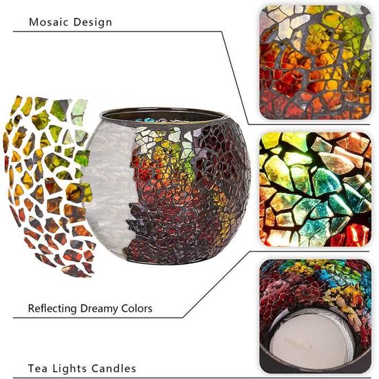 LARGE GAMME D'APPLICATIONS: Nos bougeoirs pour bougies chauffe-plat sont idéaux pour la décoration de votre chambre, salon et table à manger, également adaptés aux restaurants spéciaux, cafés, restaurants, bars et hôtels de voyage en tant que lampes de table décoratives. APPARENCE ÉLÉGANTE: Contrairement aux bougeoirs en verre transparent ordinaires, ce petit bougeoir en verre utilise un style de conception en mosaïque pour montrer votre charme artistique unique, et est également un bon choix pour vos amis et vos cadeaux familiaux. BELLE DÉCORATION: Ces bougeoirs uniques sont petits mais uniques et colorés, vous pouvez les utiliser comme une belle petite décoration pour ajouter du style à votre table à manger, fête, etc. Bougeoir En Verre Bougeoir Mosaïque, 4 Pcs Mosaïque Porte-Bougie En Verre Haute Précision Fonctionnalité Bougeoir Votif Fait Main Couleur EN STOCK : Bougeoir en verre mosaque coloré fait à la main, 4 pièces, bougeoir en verre mosaque romantique, décoration pour la maison, Bar et dner, MAI=QL=1214230001711 pas cher. Livraison rapide partout en France Matériau : composé de centaines de petits éclats de verre colorés, collés sur un bol en verre, toutes les textures sont faites à la main, allumez la bougie pour créer une belle lumière, pleine d'ambiance chaleureuse Porte-bougies Votives Décoration Bougeoirs Verre Clair 8 Pièces - Décoration Table Mariage & Fêtes 8x8cm Décoration Table Mariage Fête Verre Clair