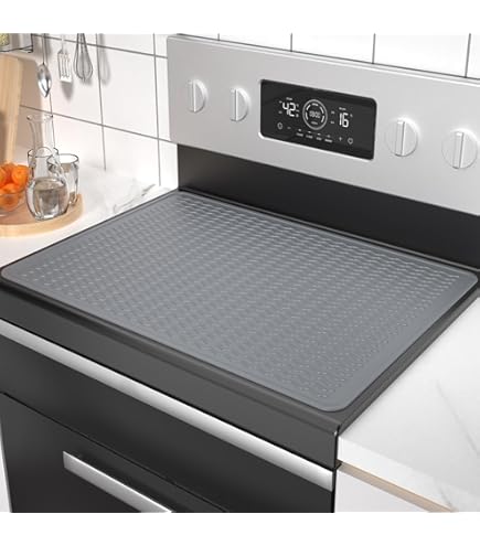 Avec sa couleur noire élégante, il s’intègre parfaitement aux cuisines modernes, tout en garantissant sécurité, propreté et organisation au quotidien. Après utilisation, la surface lisse et anti-taches se nettoie facilement avec un chiffon humide ou du liquide vaisselle, et le tapis est compatible lave-vaisselle. Grâce à sa taille généreuse, il couvre largement la zone de cuisson et prolonge la durée de vie de vos plaques et de votre cuisine. Son design antidérapant avec lignes en relief assure une parfaite stabilité, empêche vos ustensiles de glisser et reste bien plat sans se recourber aux bords Protection optimale contre les rayures – Protégez votre plaque à induction des rayures causées par les ustensiles de cuisine lourds grâce à notre tapis protecteur en fibre de verre et silicone de qualité supérieure. Ne convient pas aux plaques de cuisson en vitrocéramique Une solution idéale pour protéger vos surfaces et cuisiner en toute tranquillité. Tapis de protection en silicone pour plaque à induction 【Résistant à la chaleur 240°C】 Le tapis induction silicone supporte des températures jusqu’à 240°C, protège efficacement votre plaque et plan de travail contre la chaleur, les éclaboussures et les graisses 【Design antidérapant 3D】 Le tapis de protection plaque induction est conçu avec des lignes en relief qui empêchent les casseroles de glisser, restent bien en place et ne s’enroulent pas sur les bords Protege Plaque Induction Tapis Induction Silicone 52×78cm U2013 Tapis De Protection Plaque Tapis Plaque Induction Réutilisable à l’infini, il constitue une alternative écologique et économique aux protections jetables. Grâce à sa taille généreuse, il couvre largement la zone de cuisson et prolonge la durée de vie de vos plaques et de votre cuisine. Son design antidérapant avec lignes en relief assure une parfaite stabilité, empêche vos ustensiles de glisser et reste bien plat sans se recourber aux bords.